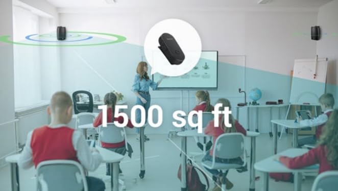 Sound Amplification Up to 1500 sq ft: With up to 1500 sq feet of clear sound projection, AmpliWave allows teachers to captivate every student using nothing more than their natural speaking voice. The teacher's voice is amplified evenly throughout the classroom, making lessons more dynamic and discussions more inclusive, without strain.