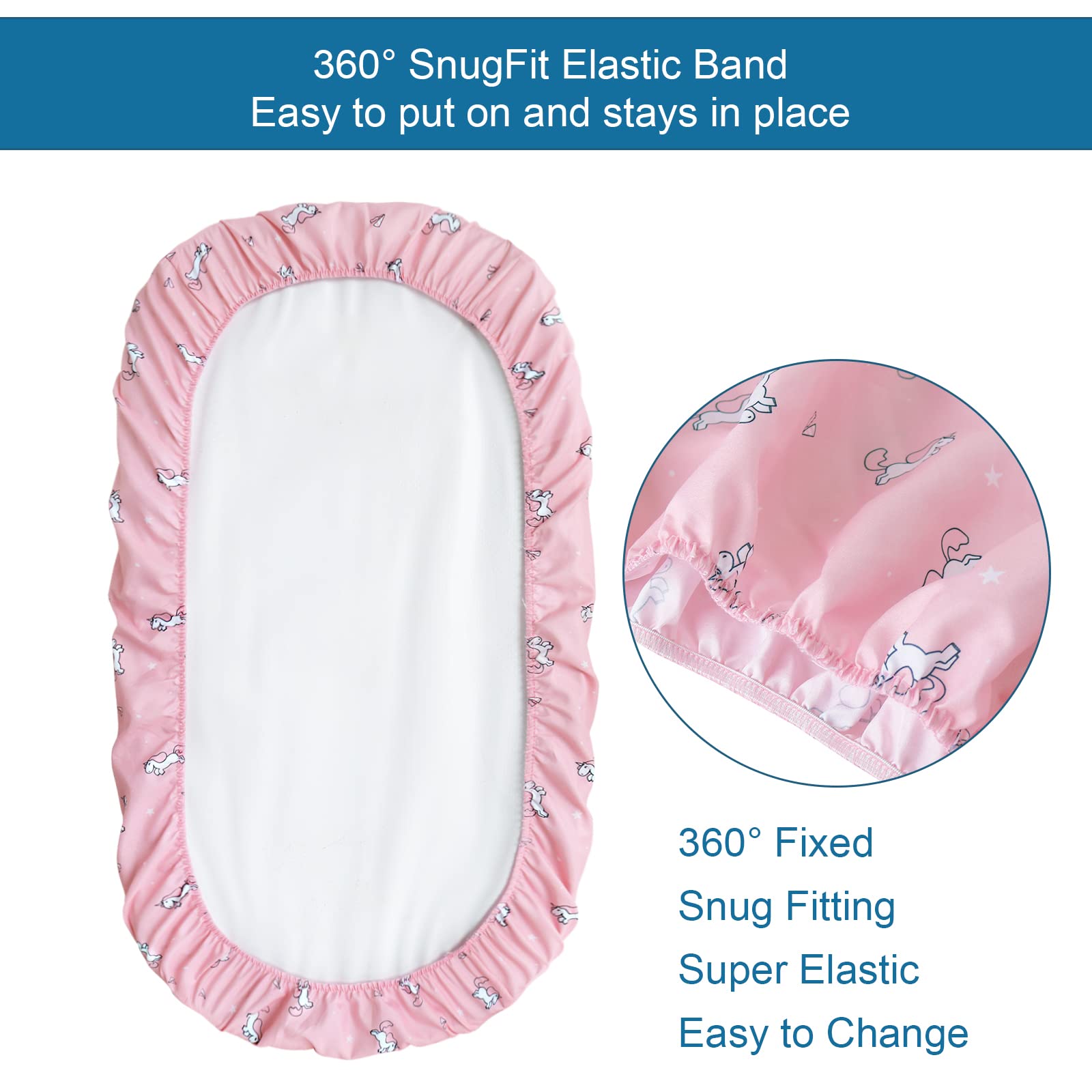 SnugFit Elastic Band: In the process of designing our SPRINGSPIRIT bassinet sheet, we use high quality elastic band which is elaborate processing, securing it in place, making our bassinet sheet durable and long lasting.