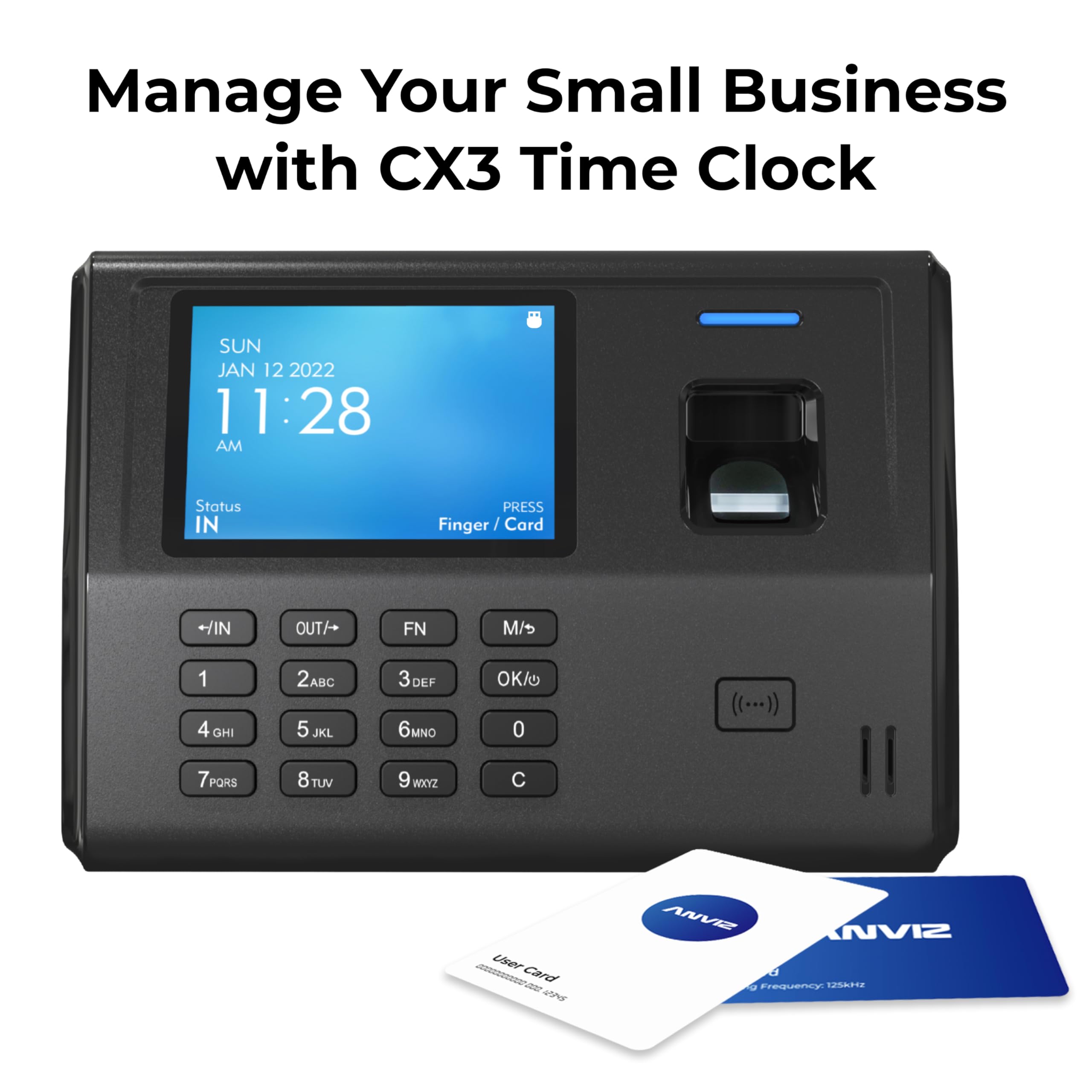 VERSATILE PUNCHING OPTIONS: Employees can log their attendance using fingerprints, PINs, or RFID proximity badges and fobs. The package includes 2 backup RFID cards, and additional cards are available for purchase if you require more