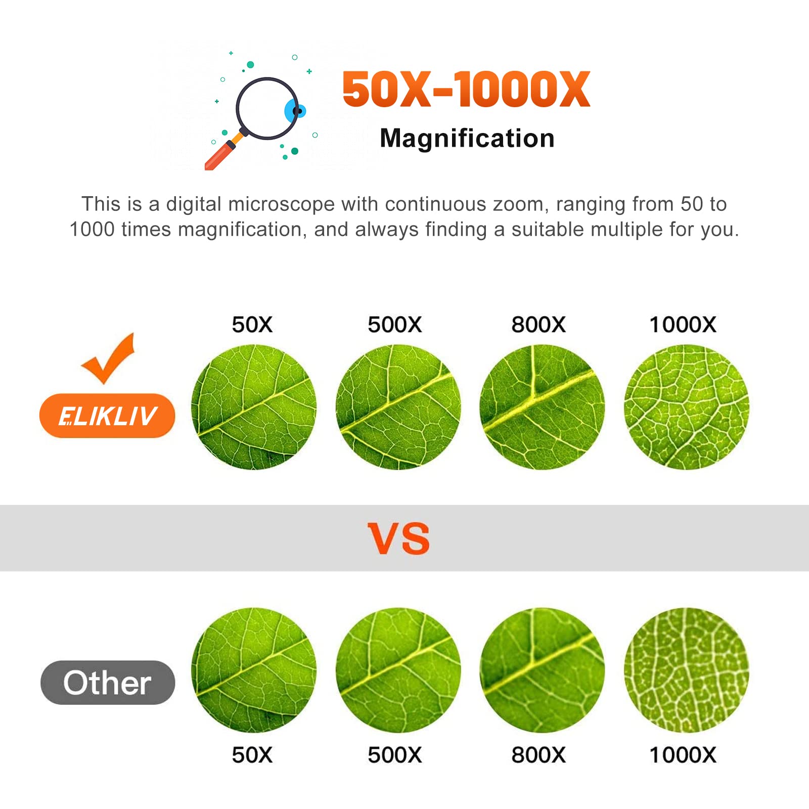 Powerful Magnification: This microscope for adults allows you to zoom in and see the incredible details at a great magnification. The actual magnification differs due to the screen size, the distance between the camera and object