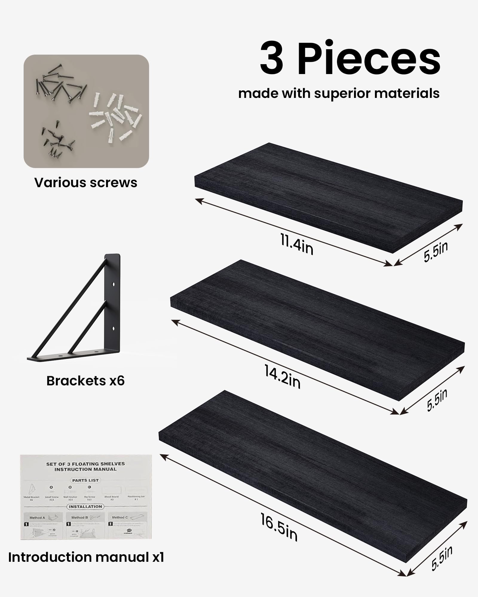 Organize your space with our wall mounted shelves. These black shelves are perfect for bedrooms, bathrooms, or living rooms. With their sleek design and easy installation, they are ideal for any room, providing both practicality and a stylish touch.
