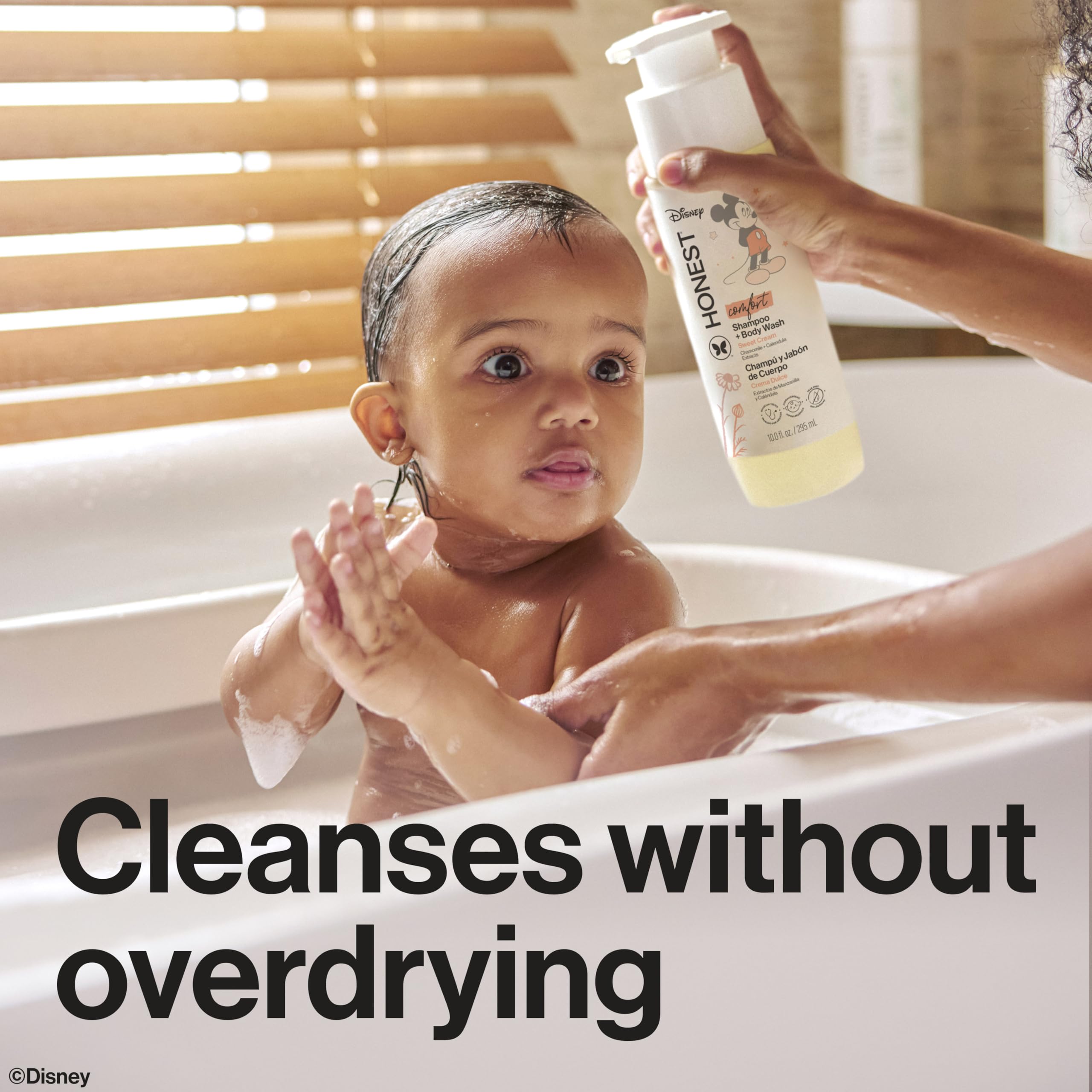 Made with naturally-derived botanicals and a fresh, delicate scent, Honest’s head-to-toe Shampoo + Body Wash cleanses without overdrying, leaving hair and skin soft and clean. Dermatologist tested, this nourishing formula is gentle for baby’s delicate skin, and perfect for the whole family. HOW TO: Work into a rich, creamy lather and gently cleanse baby's damp skin and hair. Rinse well. BE MINDFUL: Use only as directed. For external use only. Avoid contact with eyes. If contact occurs, flush thoroughly with water. Keep out of reach of children, except under adult supervision. INGREDIENTS: Water (Aqua/Eau), Aloe Barbadensis Leaf Juice, Cocamidopropyl Hydroxysultaine, Sodium Laurylglucosides Hydroxypropylsulfonate, Disodium Cocoyl Glutamate, Sodium Cocoyl Isethionate, Calendula Officinalis Flower Extract, Chamomilla Recutita (Matricaria) Flower Extract, Cocos Nucifera (Coconut) Fruit Extract, Glycerin, Caprylyl Glycol, Panthenol, Guar Hydroxypropyltrimonium Chloride, Caprylhydroxamic Acid, Triethyl Citrate, Citrus Limon (Lemon) Peel Extract, Vanillin, Maltol, Benzaldehyde, Anisaldehyde, Dipteryx Odorata Seed Extract, Gamma-Decalactone, Trisodium Ethylenediamine Disuccinate, Sodium Benzoate, Sodium PCA, Citric Acid, Limonene