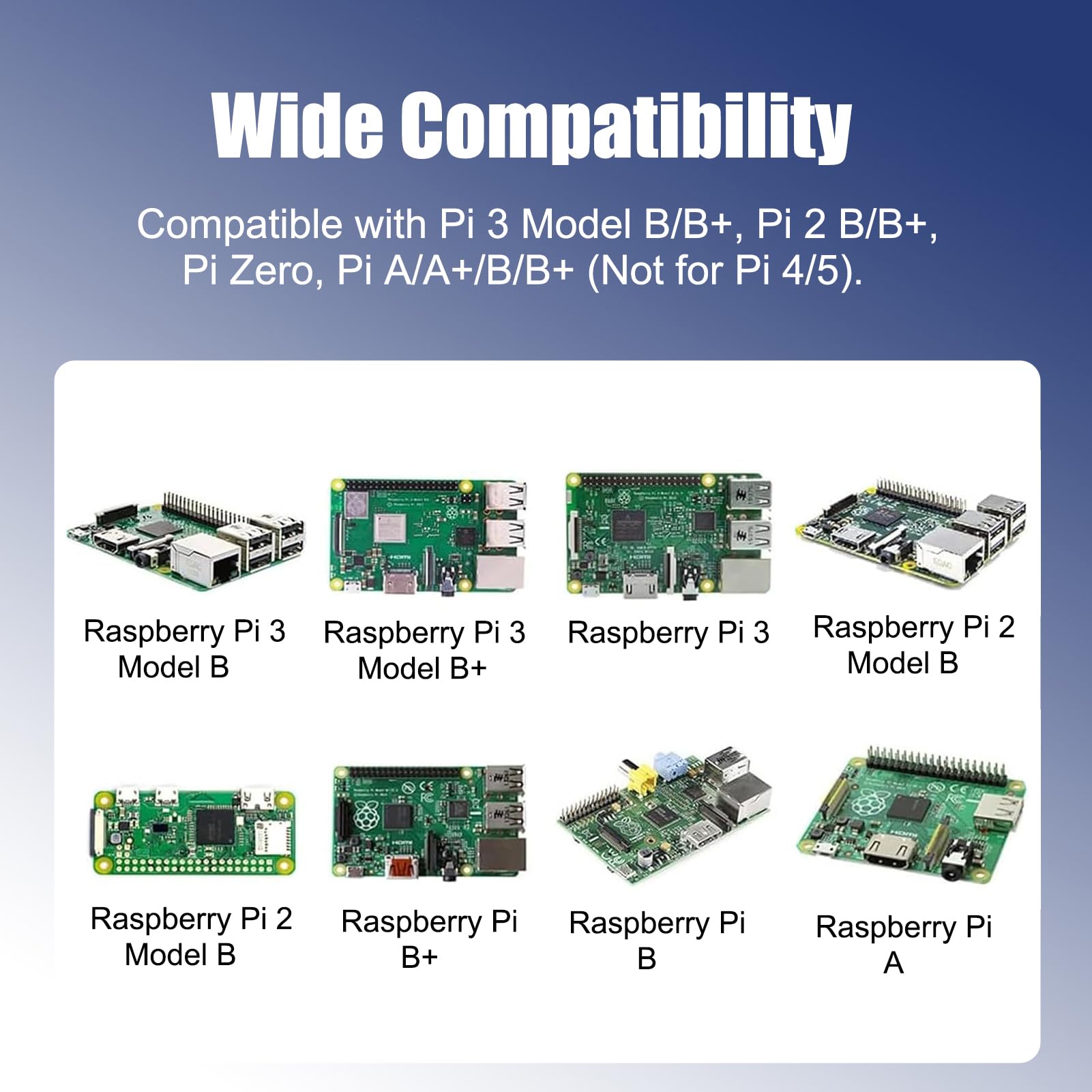 【Wide Compatibility】Compatible with Raspberry Pi 3, Pi 3 B+, Pi 2, Pi Zero, Model A/A+/B/B+. Not compatible with Raspberry Pi 4 or Pi 5.