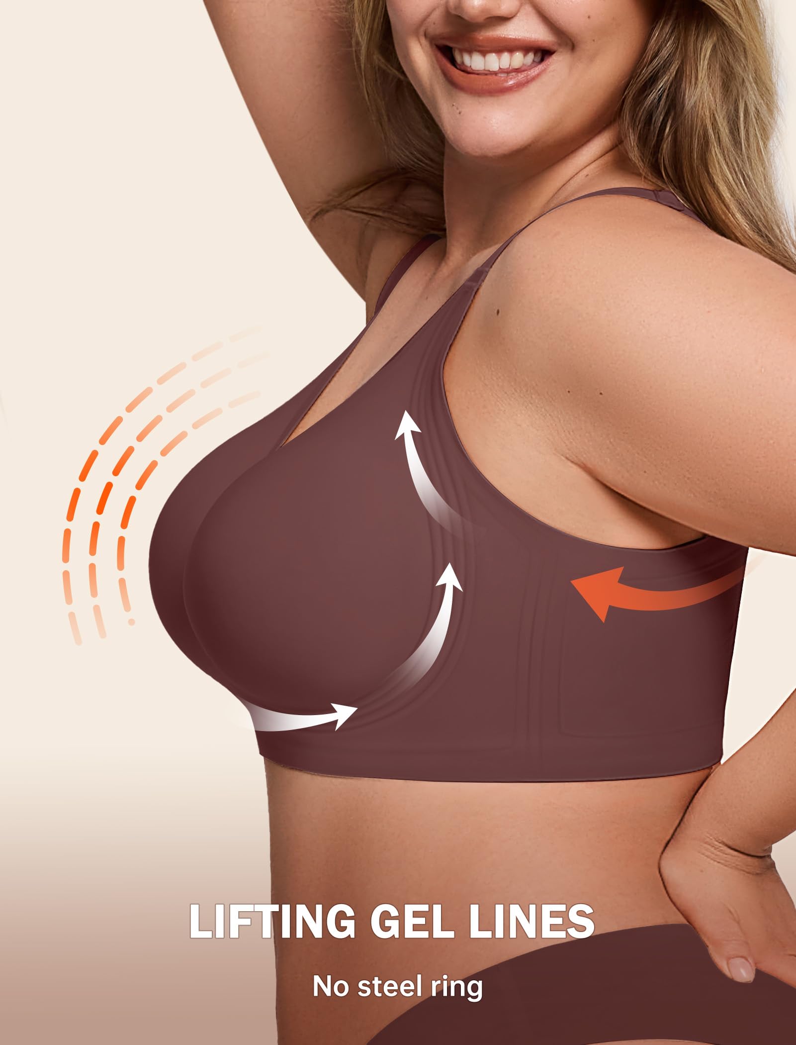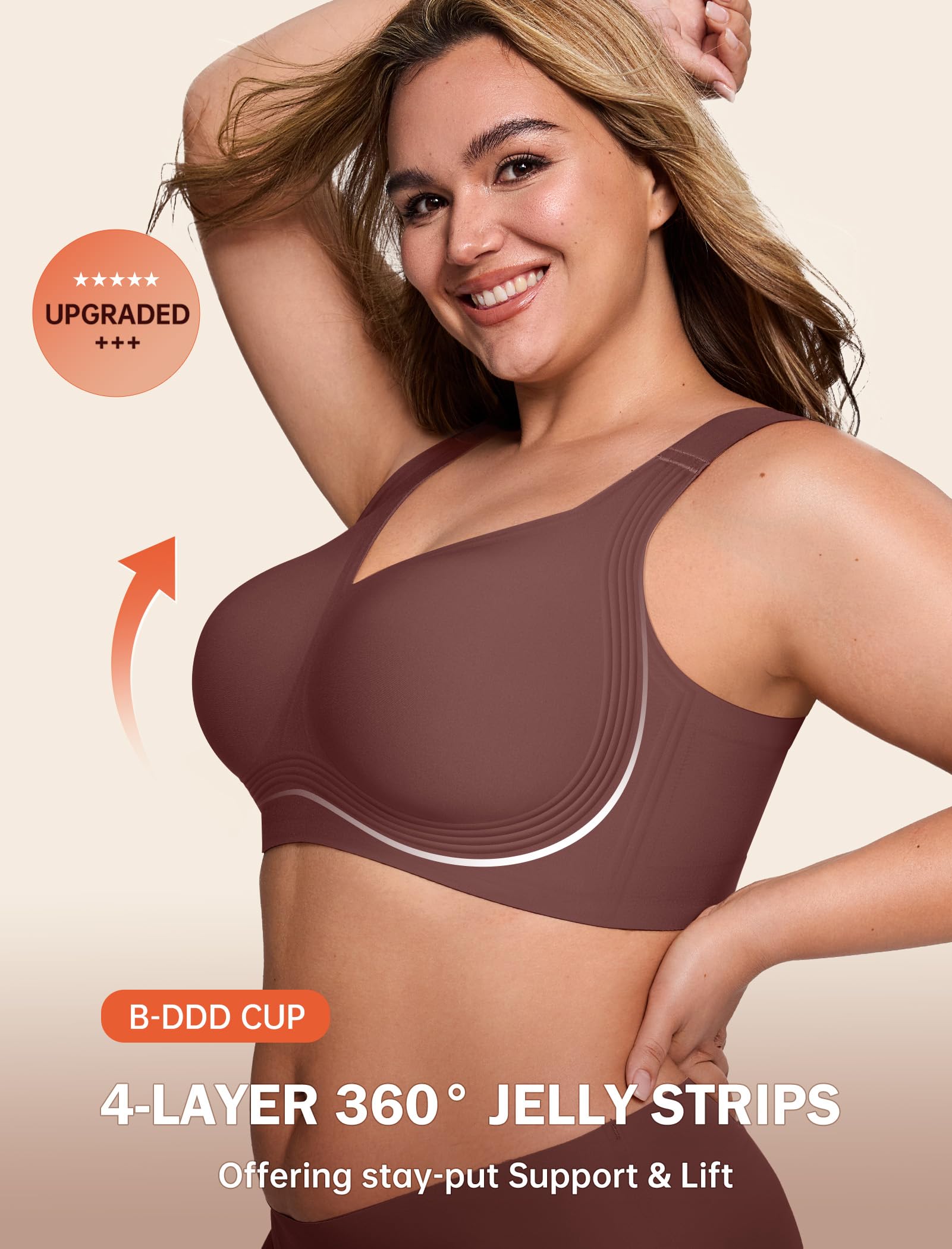 【Upgraded High Supportive Jelly Bras for Women】These wireless bras with support and lift are upgraded with 4-Layer 360° jelly strip support system that enhances your shape and controls bounce. You can even wear the push up bra as sports bras for women.The jelly bra offers all-day comfort, with no wires and no slippage.