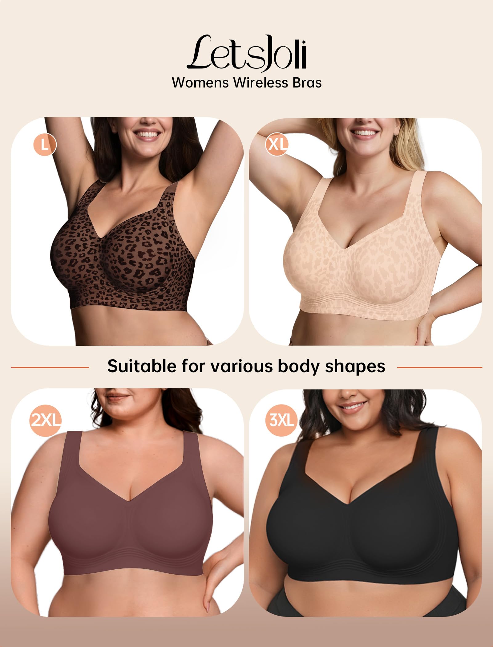 【U-back & Invisible Cross Straps,fit for All Occasions】 The U-back wearing is comfortable and unrestricted, ideal for everyday wear like traveling, working, and lounging at home. The seamless bra can be used as sleep bras, tshirt bras, yoga bra, light sport bra & casual everyday wear. The Cross-back style enhances support and lift, perfect for running, working out, and cycling. LetsJoli push up bras for women will go well with any outfit, such as a t-shirts, blouses, tank tops, dresses, etc.
