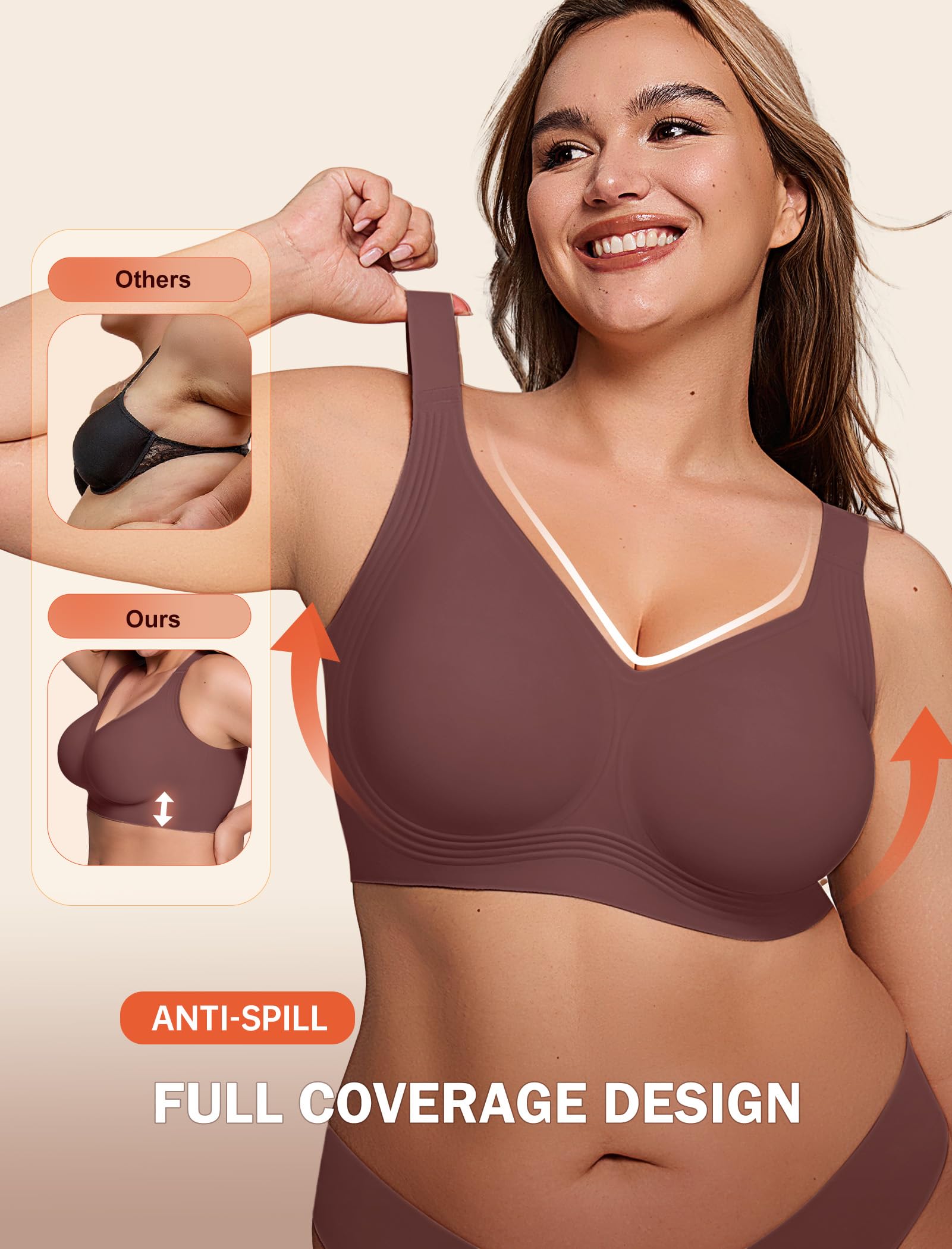 【Specially Designed for Fuller Figures】Full coverage bra design, higher side wings and side support strips, wider shoulder straps offering a maximum support and reducing breast movement during workouts or daily activities. The full coverage bras for women come in a variety of sizes, from S to 5XL, fit for CUP B to CUP DDD. Ideal for fuller figures, the wireless bras for women provide the perfect balance of comfort and style.