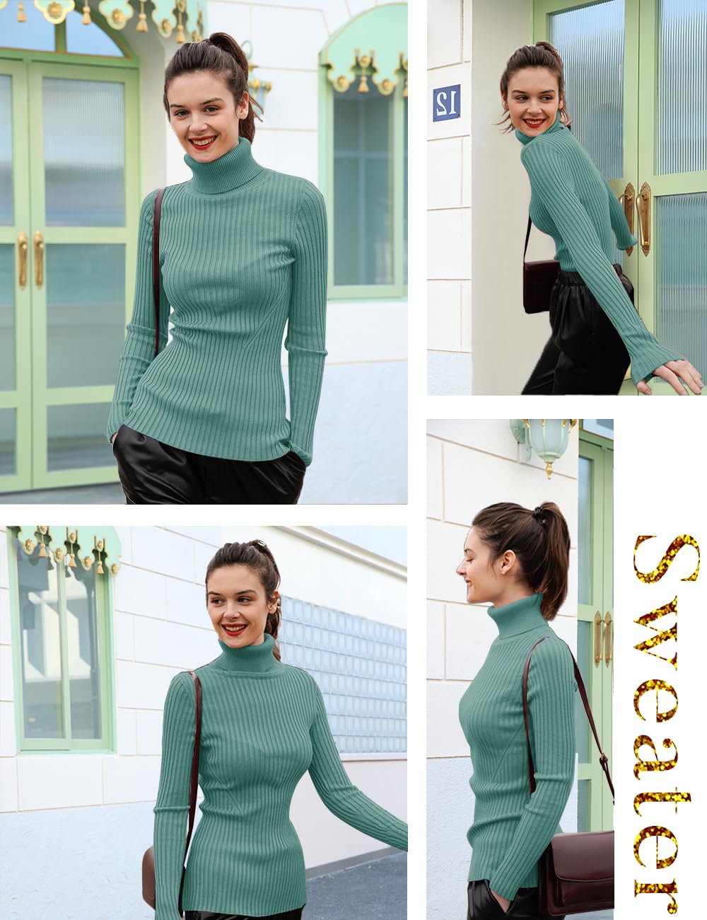 Turtle Neck Ribbed Sweater -- Knitted by Germany STROLL Machine to Ensure its High Quality Material: Highly Stretchable Viscose (Comfy Silky Smooth Feeling and Showing Off your Sexy Female Curve Silhouette)