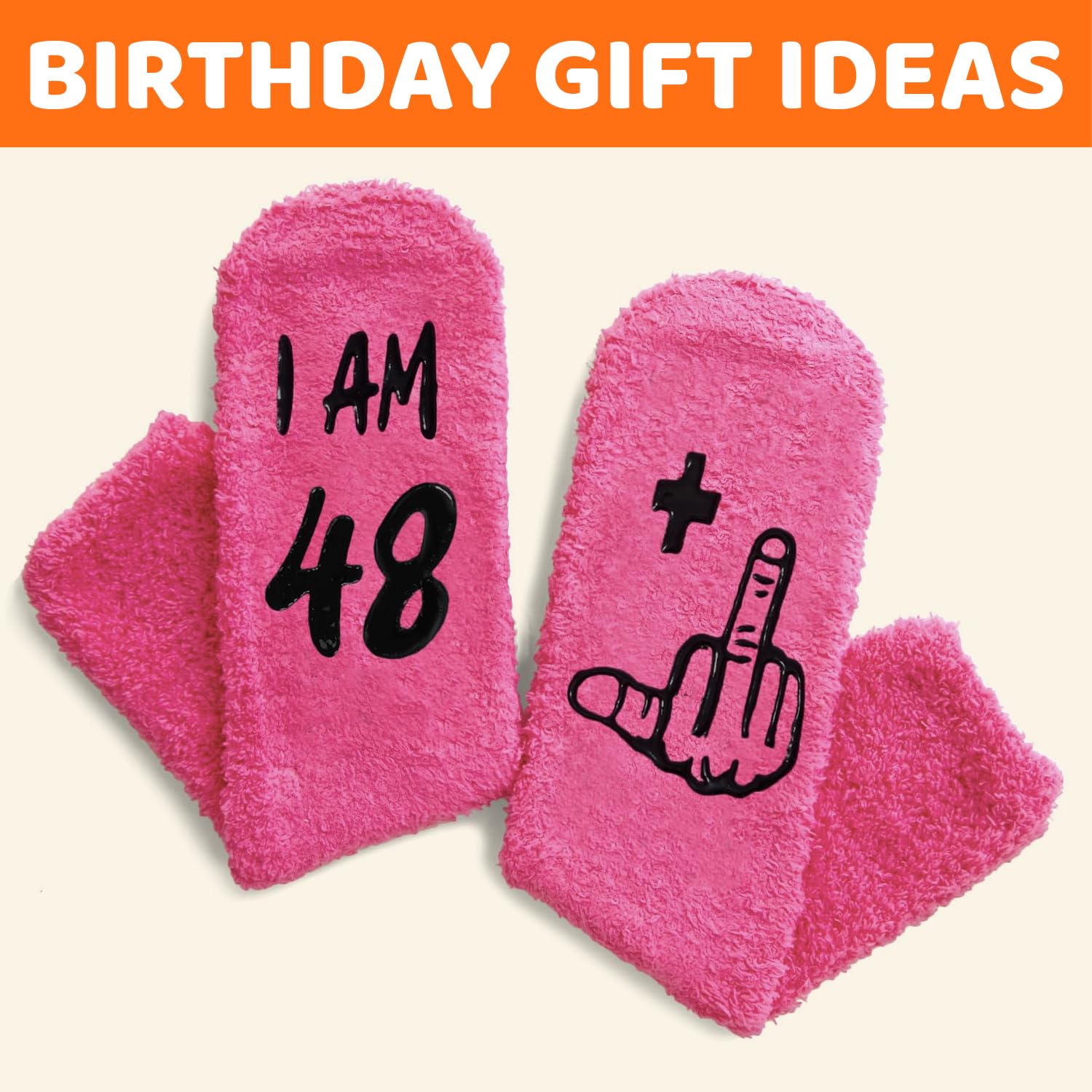 BIRTHDAY GIFTS FOR WOMEN: Make her birthday unforgettable with cozy, cheeky socks that say "I AM 48 +1" – a fun, heartfelt gift for mom, wife, sister, aunt or female friend turning 49. Thoughtful, lighthearted, and full of love.