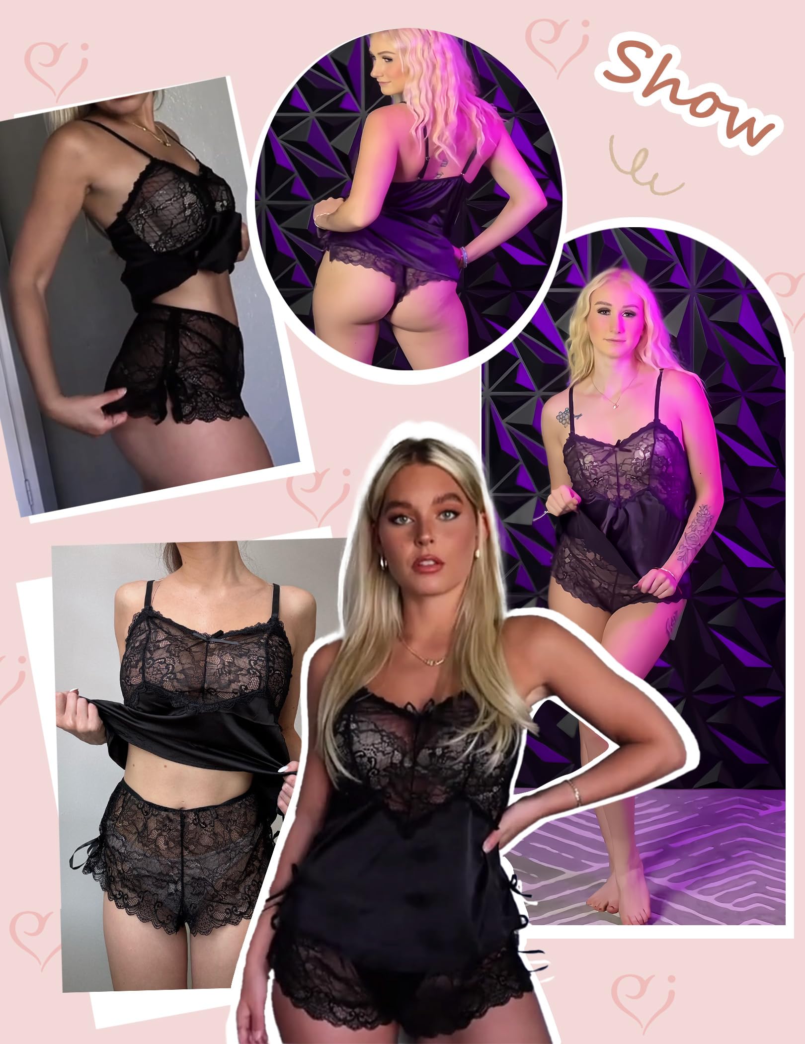 Feeling bored in your bedroom and don't know what to wear in leisure time? Then you should check this out: 2 piece pajama set for women, overall satin fabrics with stretch, cute silk side ties, sheer lace panels around bust offer a seductive sense of sexiness to attract your lover. Just get one as your loungewear in the boudoir, you're gonna love it!