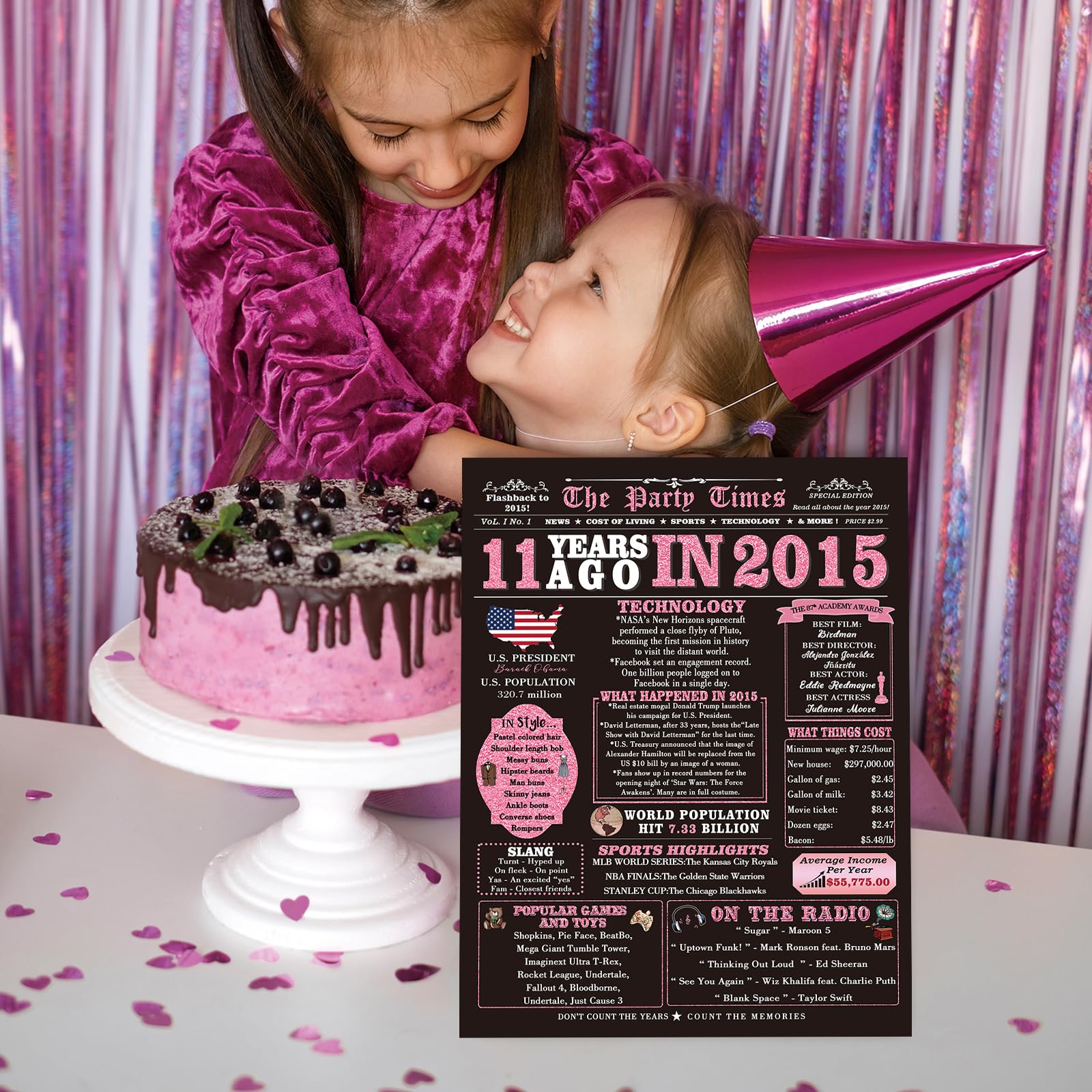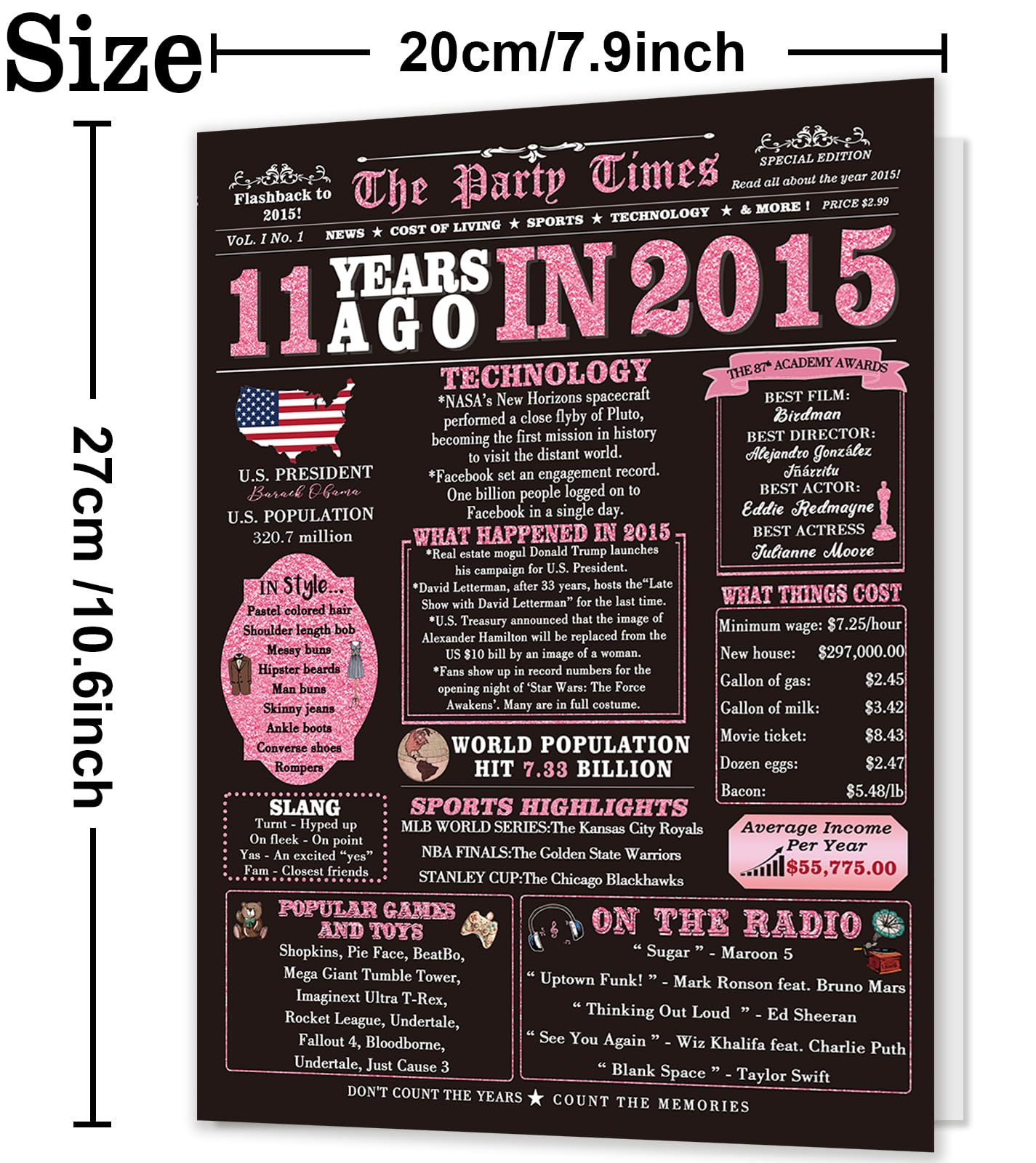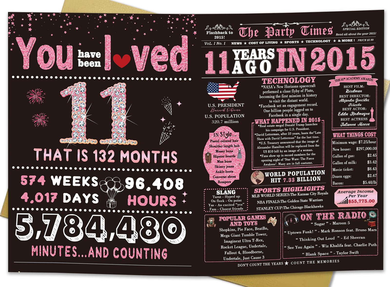 This 11th birthday card is perfect for girls, featuring a "Back in 2015" theme with rose gold accents, making her special day unforgettable.