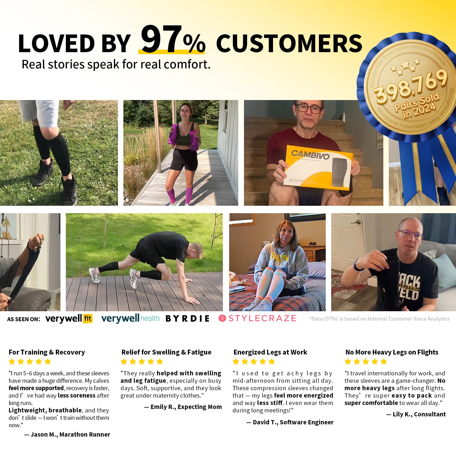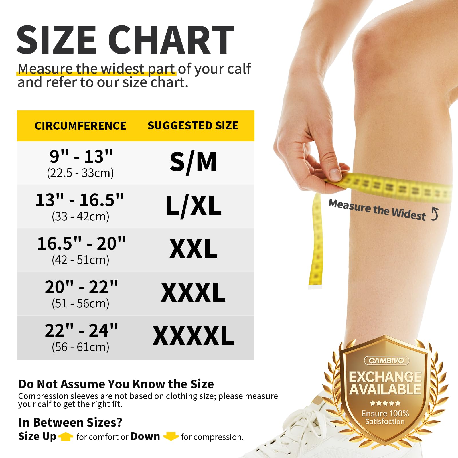 Varicose Veins Treatment for Legs - Keep away from waking up every night with cramps in your legs, Cambivo calf sleeves can warm your leg up and offer graduated compression during the long night, reduce the leg cramps, and have a good sleep in bed, which is also fit for calf tightness, stiffness, varicose veins, swelling, and other calf pains