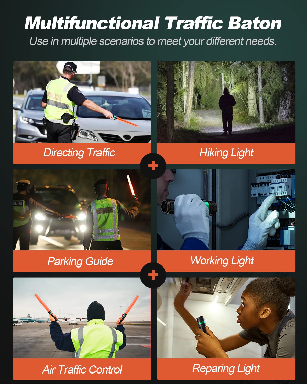 Widely Use: This safety signal wand is great for directing traffic, parking attendants, roadside emergency, fire departments, night walking