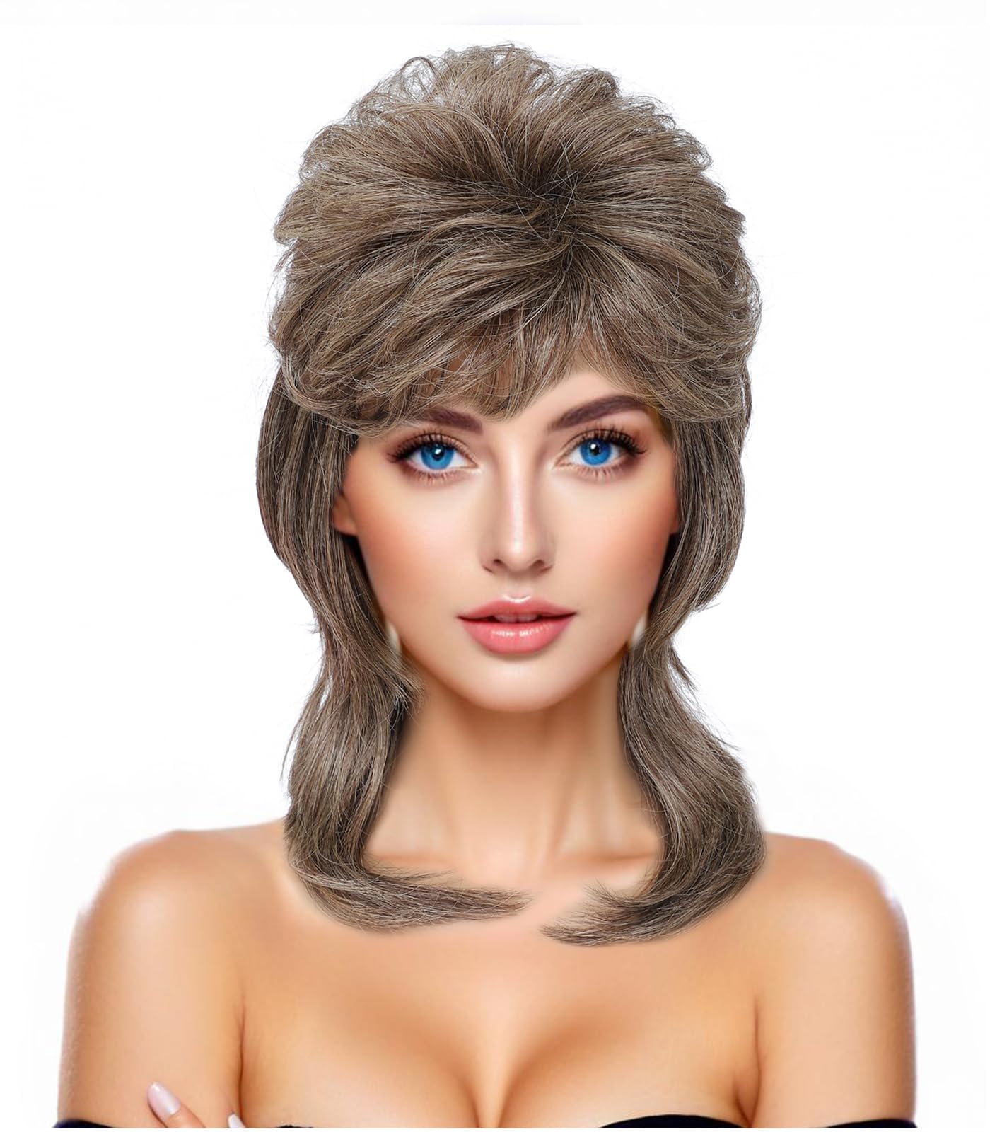 Easy to Care : When you just opened the package,Due to the long distance transportation, the Mullet Wigs is squeezed.Just run your fingers through the Mullet Wigs and shake it slightly, then it will become as the pictures. You can also cut & curl it to fit your face.