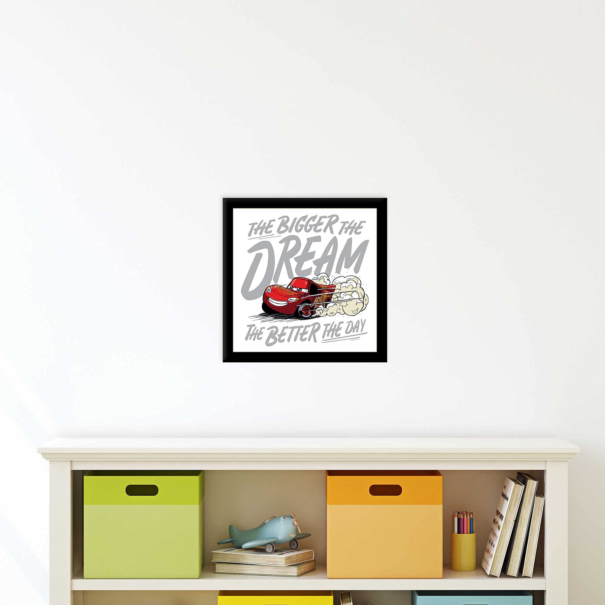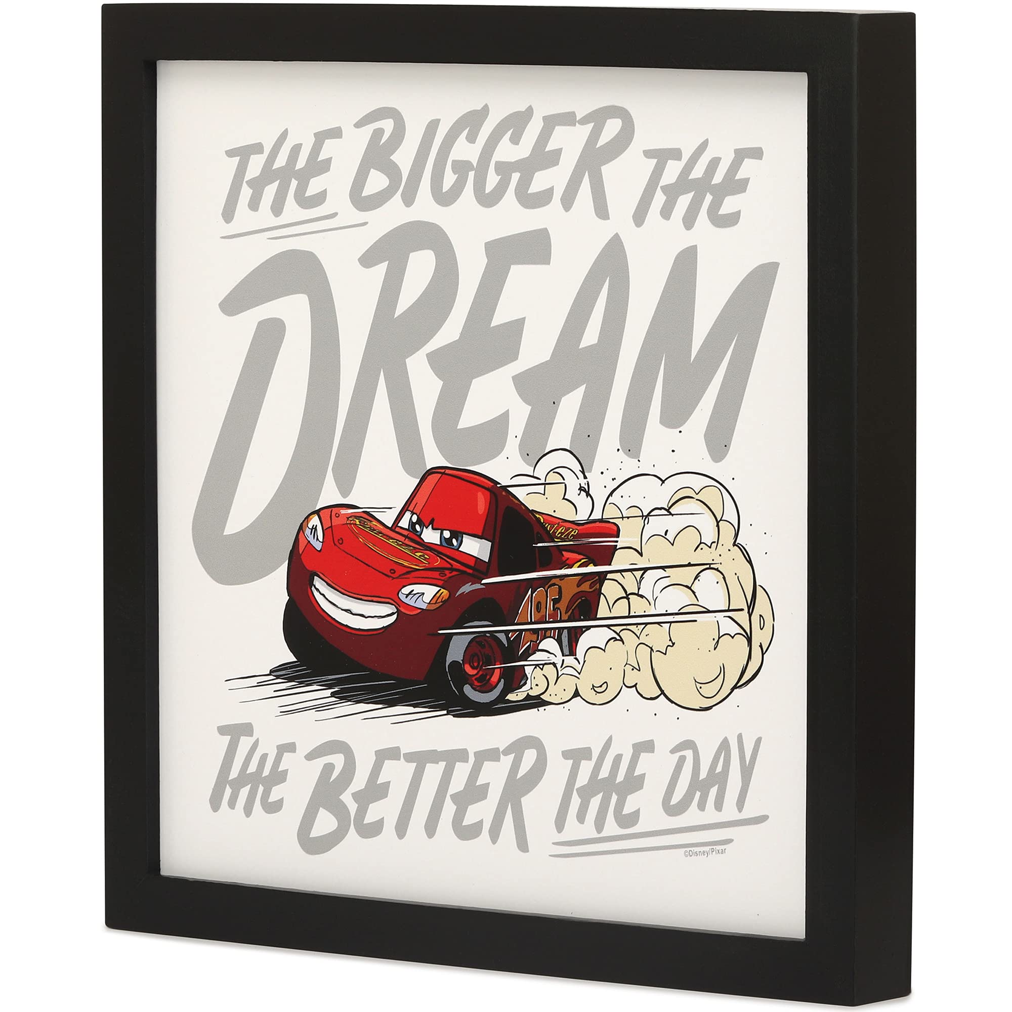 Disney Pixar Cars official product: Hit the road and dream big with this motivational decor! Featuring Lightning McQueen in action, this vibrant wall decor is a fast and fun way to add excitement to your life.