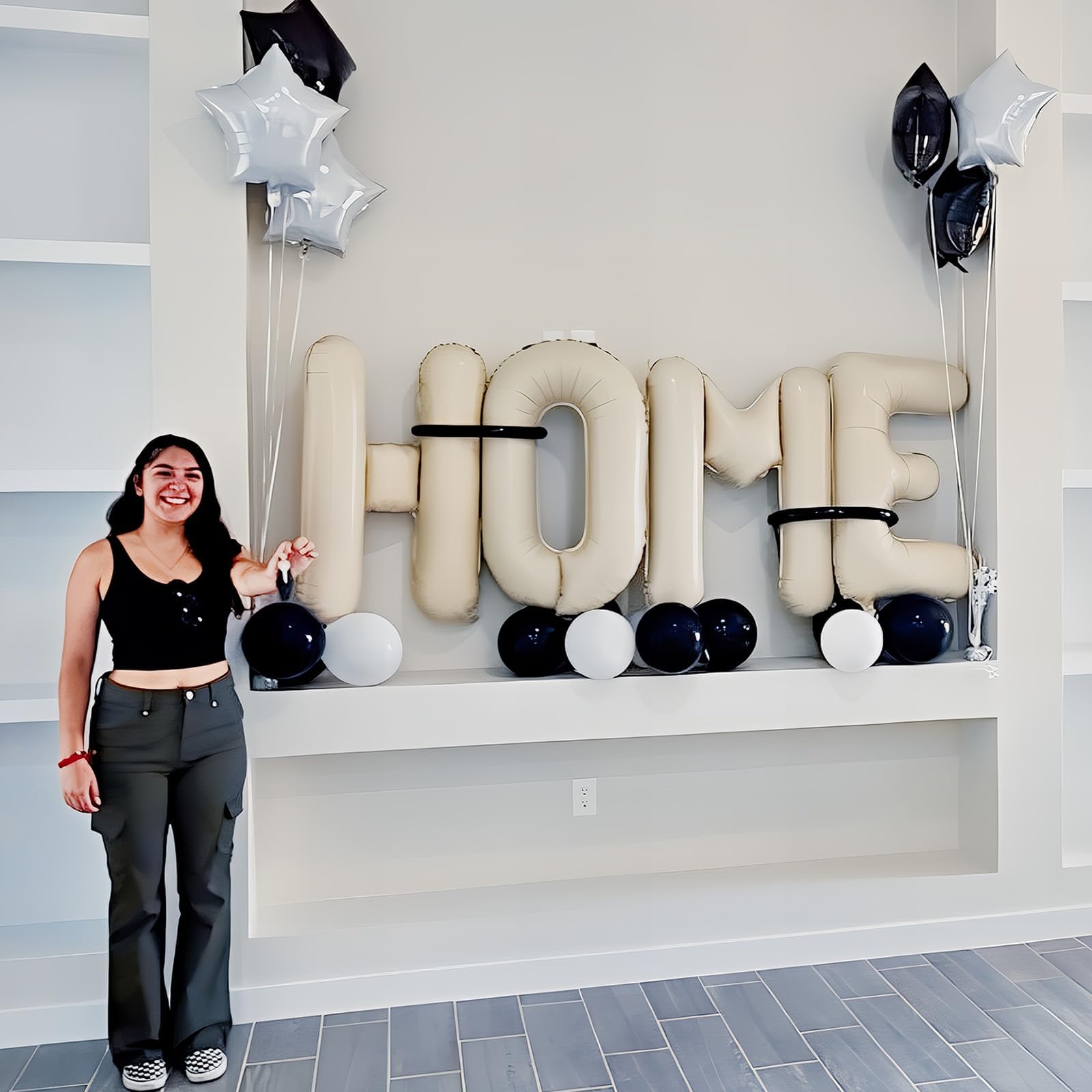 Perfect Size & High Quality: These cream white HOME balloon letters are made of high quality mylar foil, all the alphabet balloons are safe, durable, non-toxic, strong and and reusable. Just fill 90% of the balloon that could allow the balloon to expand completely.