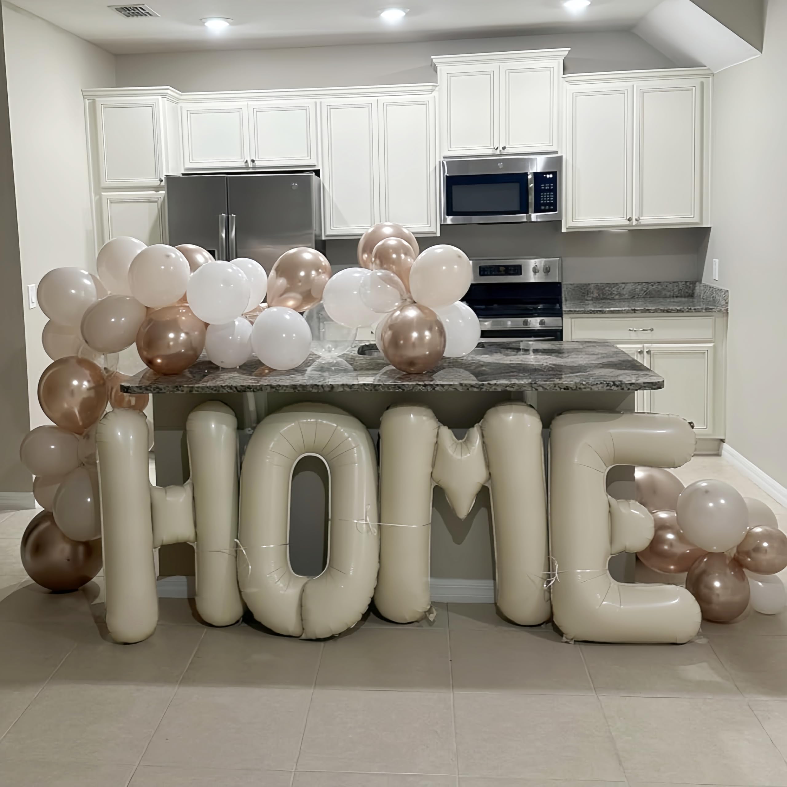 HOME Balloons for Housewarming Party Decoration: You will get 4 pieces 40 inch large beige H + O + M + E foil letter balloons banner with 1pc balloon ribbon, perfect for house warming party, new home sweet party, welcome home party decorations.
