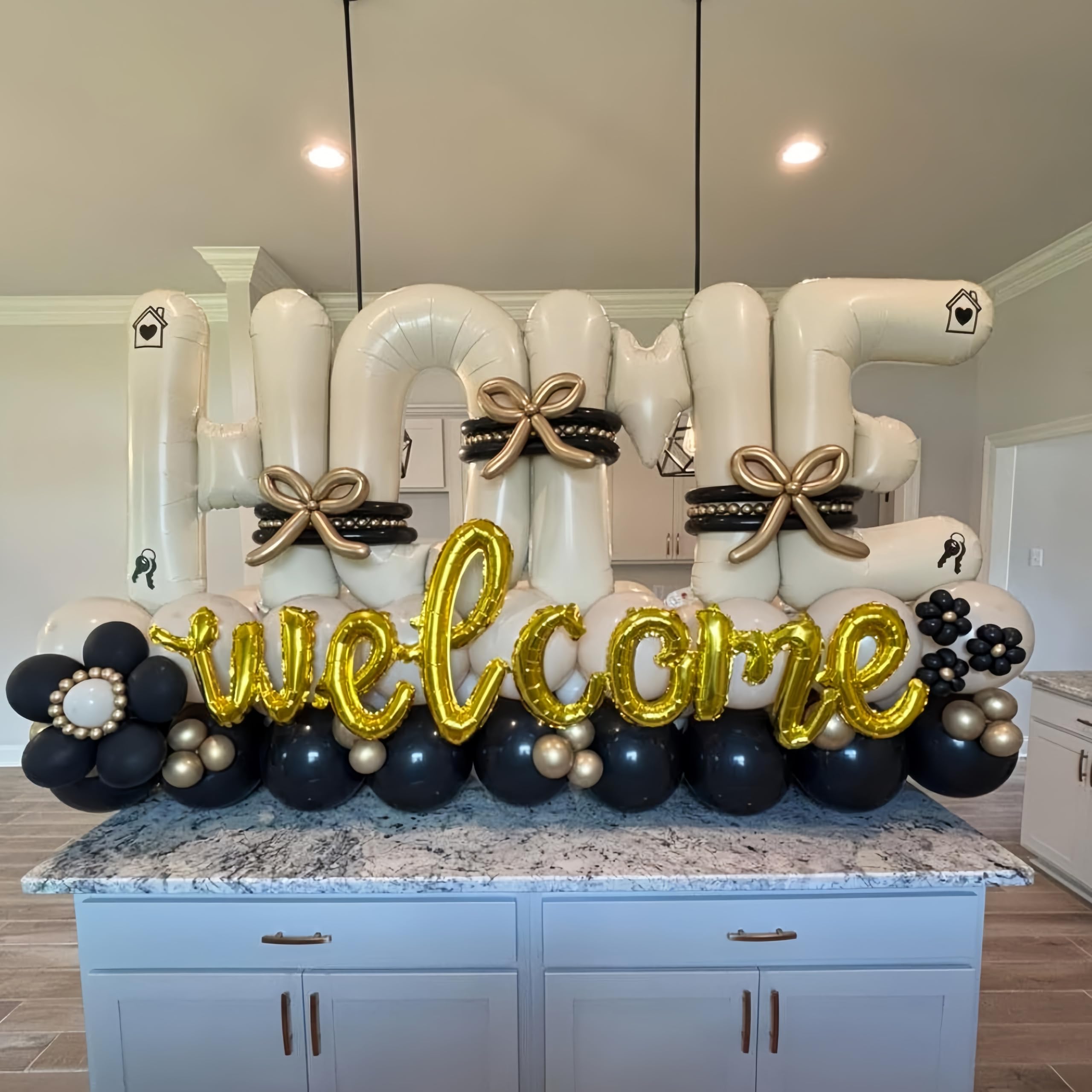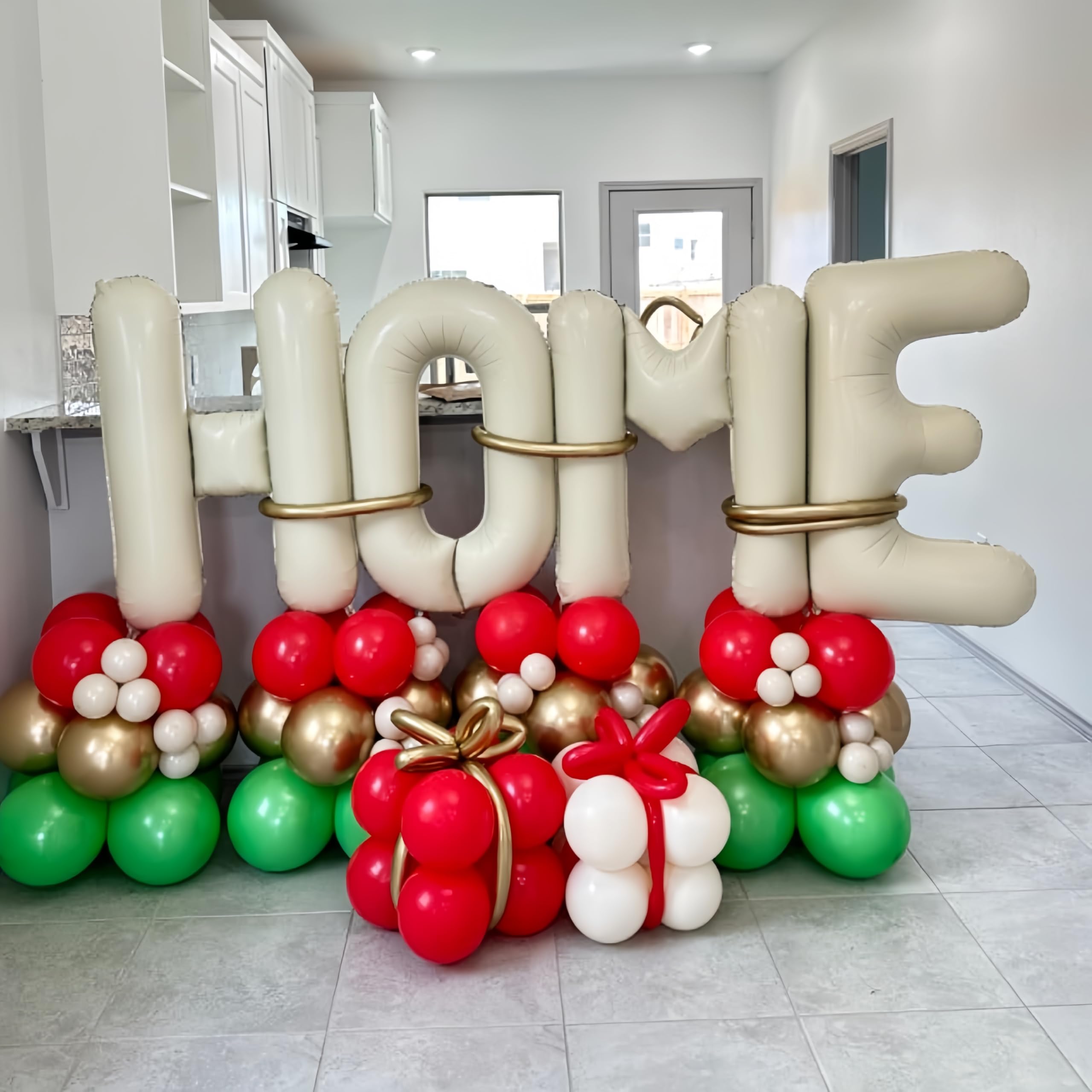 40 Inch Large HOME Foil Letter Balloons Kit is Perfect Gift for Boys Girls Women Men Housewarming New Home Welcome Home Sweet Party Decorations Supplies and other indoor and outdoor activities. Specifications: 🎉 Material: Aluminium Foil 🎉 Quantity: 4 pcs 🎉 Size: 40 Inch What You Will Get: 🎁 Giant Letter HOME Balloons pcs 🎁 Balloon Ribbon 1pc Features: 🎈 Super cute and pretty HOME foil letters balloon with matte texture appearances. 🎈 The alphabet HOME foil balloons are made of high-quality foil, which is safe for children and can be used multiple times. 🎈 These house warming party decoration balloons can be filled with air or helium, the latex balloons can float when filled with helium. 🎈 There are holes on the bottom and top of the letter HOME foil balloons, you can use the balloon ribbon to hang the balloons or stick it on the wall. Warm Reminder: ⚠️ Please don't over inflate the HOME foil balloons, 80%-90% is the best. ⚠️ Keep the balloons away from the flame, lemon juice or sharp objects, avoid exploding. ⚠️ Due to the light and screen difference, the item's color may be slightly different from the pictures. ⚠️ Due to manual measurement, the size and weight may have a certain error.