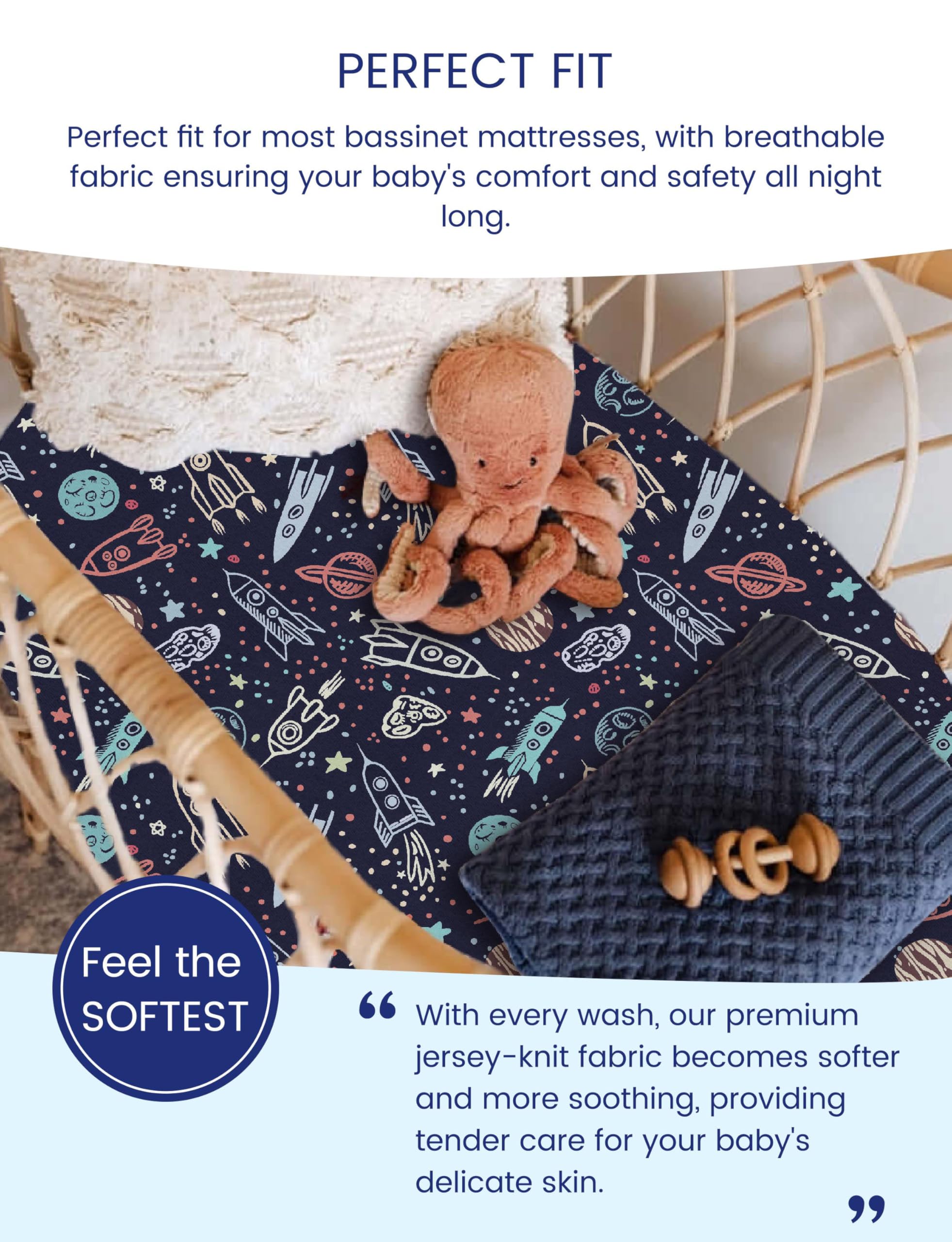 SOFT. SUPPLE. SILKY: TotCare fabric is weaved out of the finest fibers to ensure superb flexibility and smoothness.Make your baby's cradle the softest sleep space. The TotAha cradle sheets set will guarantee relaxation at night.