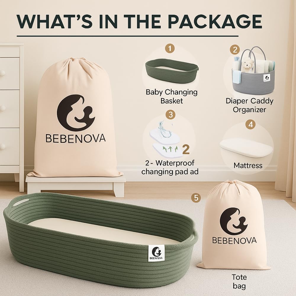 Stylish and Practical Diaper Storage: Keep baby essentials neatly organized with the included diaper caddy basket, dipper caddy organiser, and basket covers for baby—ideal for managing , diapers, and creams in a tidy and accessible space.