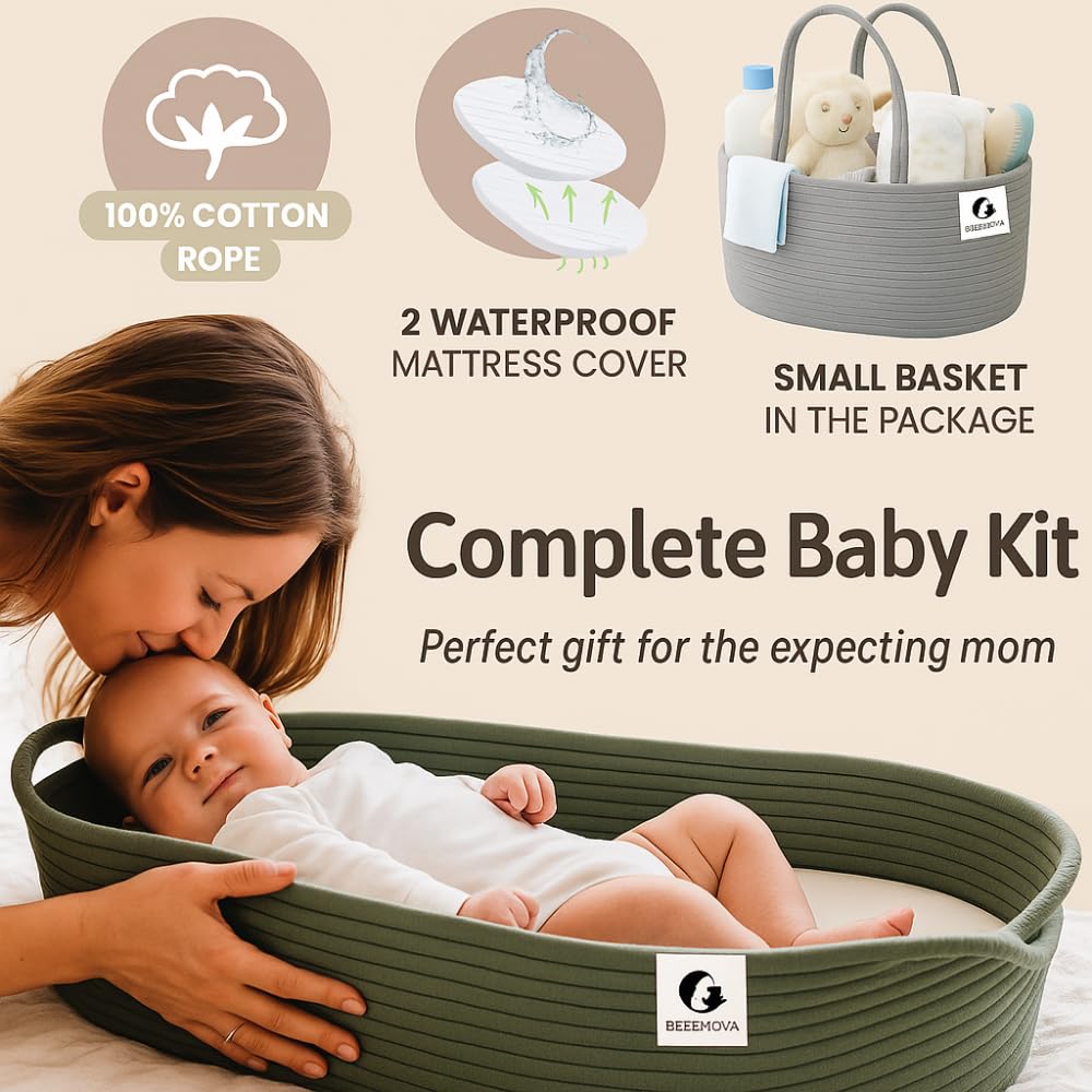 ALL-IN-ONE BABY NURSERY GIFT SET – Complete 5-piece bundle includes diaper changing basket, diaper caddy organizer, Soft changing pad waterproof mattress cover , and tote bag. A beautifully coordinated set that makes a perfect baby shower gift, newborn gift, or maternity gift—everything new parents need in one elegant package.