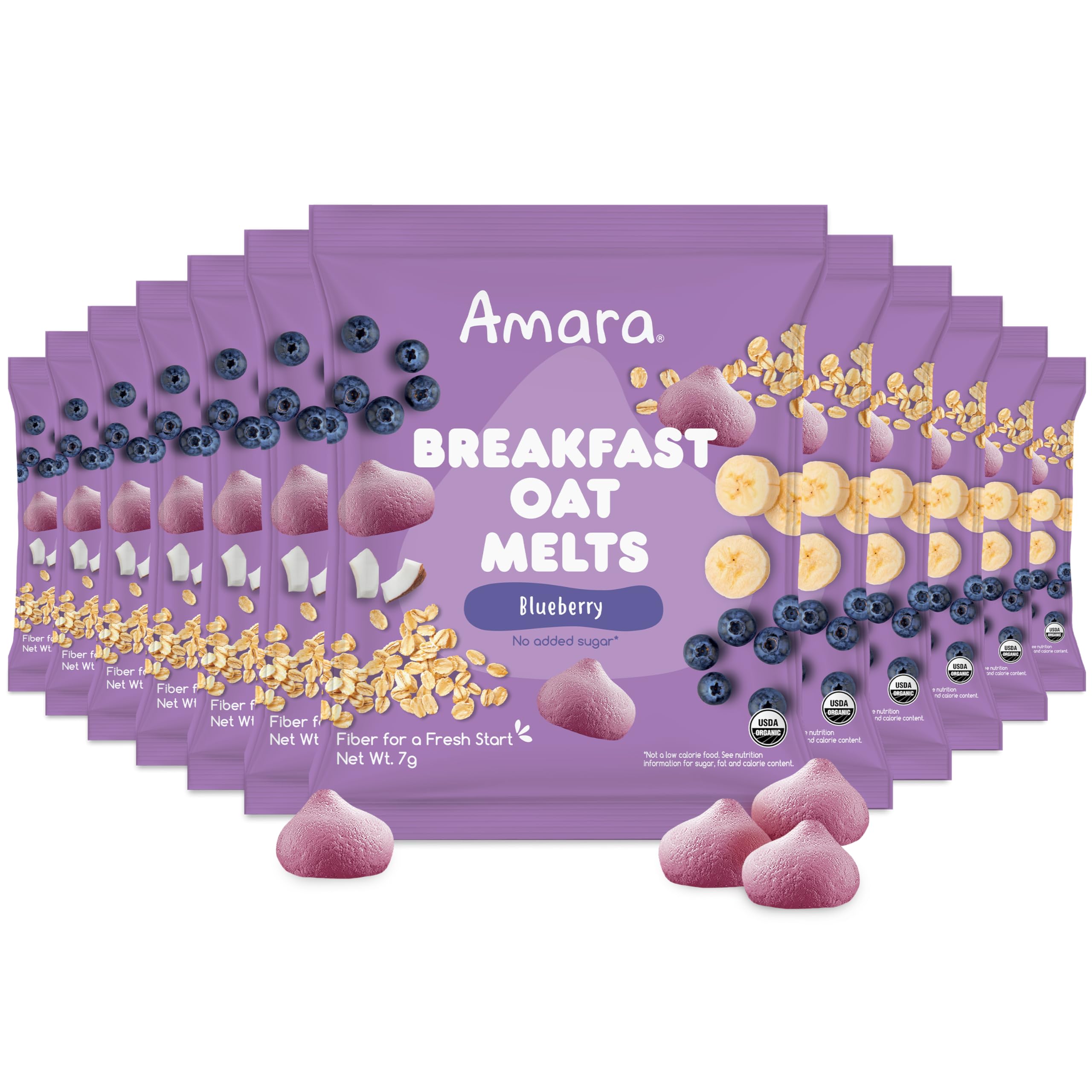 NO ADDED SUGAR: Amara delivers nutritious baby food and snacks that are 100% organic and non-GMO. The first melt-in-mouth snack without any added sugar or fillers, these melts keep little hands busy and tiny tummies full without the sugar crash.