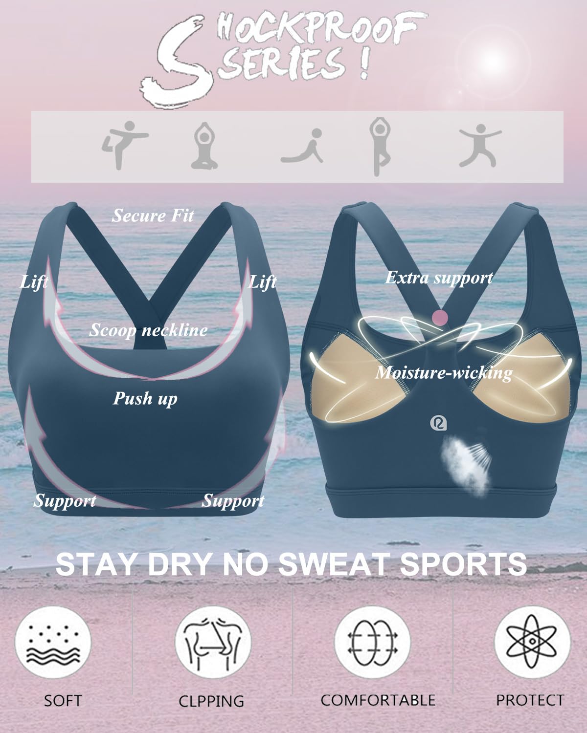 ✅ 【SWEAT OUT IN STYLE! 】: Made from a flexible four-way stretch fabric that supports your body as you move. Enjoy the freedom of movement as the open back styles aim to keep you comfy and cool while you bring on the heat! Running sports bras for women with wide waist band for that support we all need!