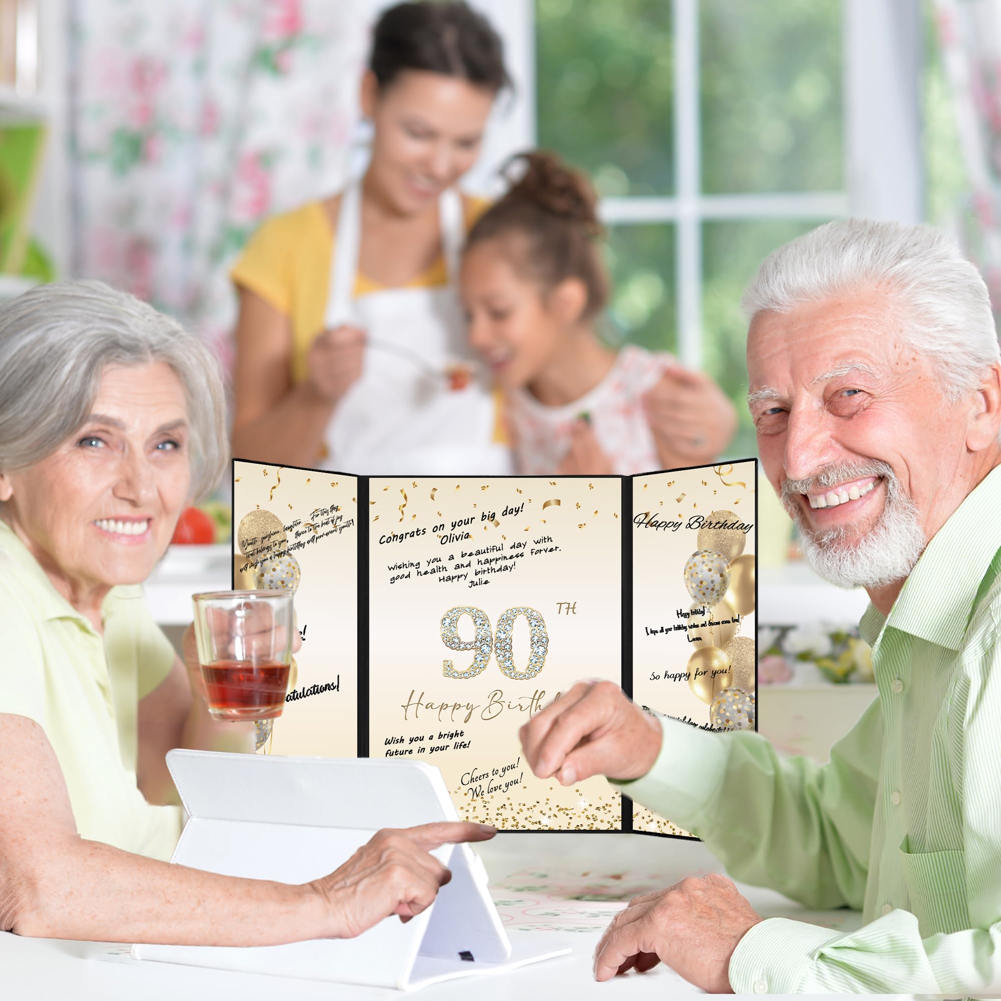 【Wide Application】 - Decorating your home and party with our gold 90th Birthday Certificate poster card will be a big hit at your 90th birthday party. This cheers to 90 year old party decoration is easy to match with other party supplies, creating a warm vibe for your party. Perfect as a decoration for birthday parties for you, your family, friends, or coworker. The framed black gold 90th birthday guest book can be displayed anywhere at home or office as cherished reminders of the special day.