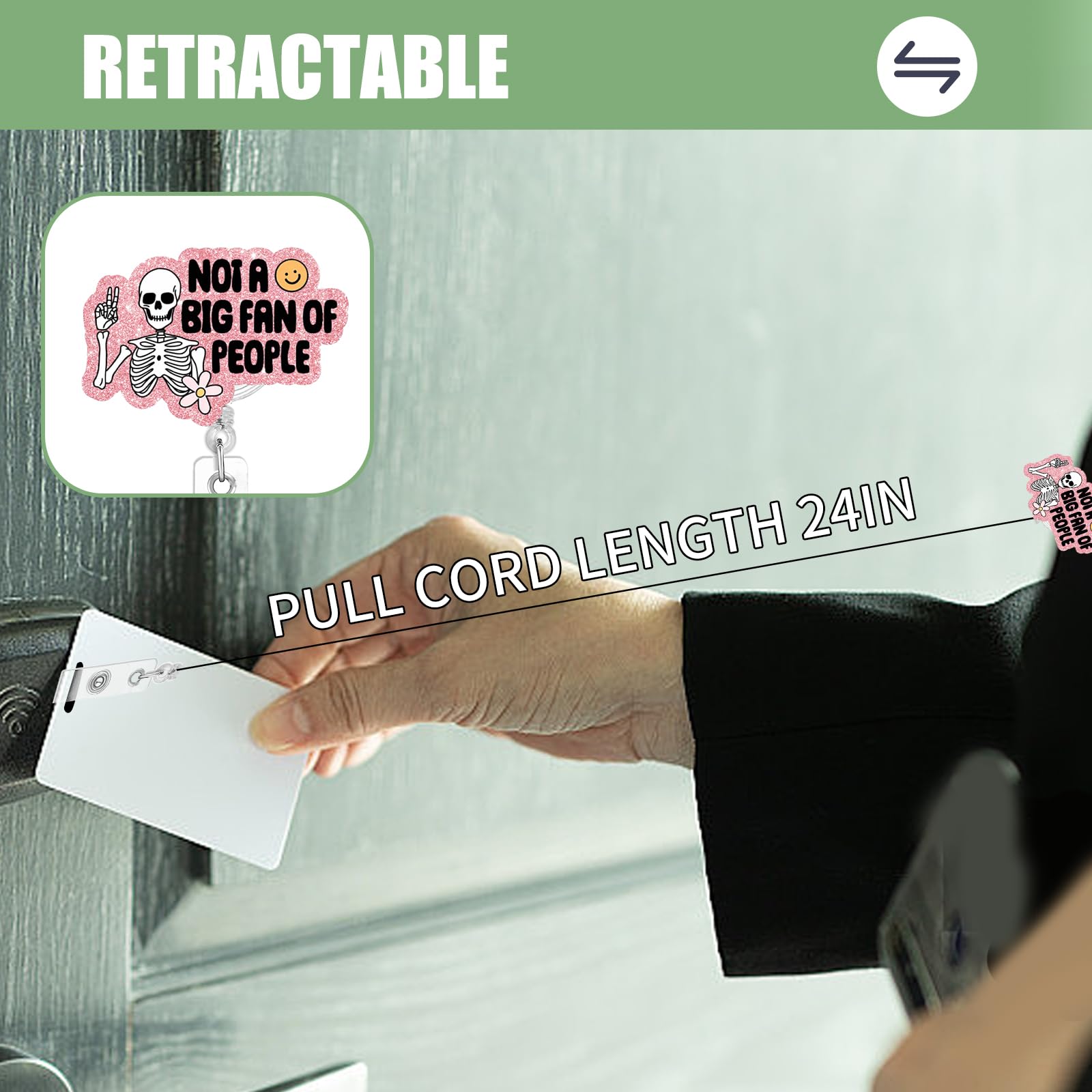 【Retractable Convenience】Retractable badge reel, diameter about 3.5 cm/1.4 inches, retractable length 24 inches (60 cm) (there is a certain error in manual measurement), which lets you scan cards or take out keys to open doors easily.