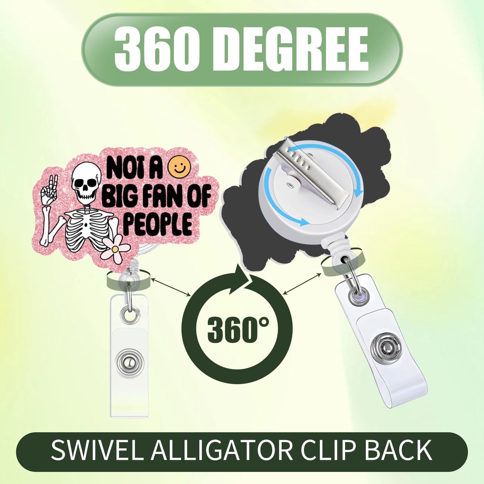 【Safety Attachment】The badge reel comes with a rotating alligator clip that can rotate 360 degrees, this badge reel securely attaches to your clothing, providing a firm grip.