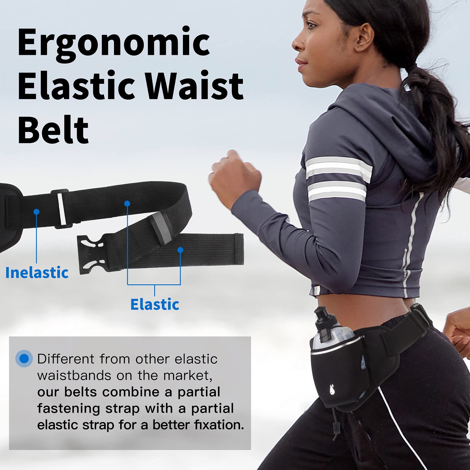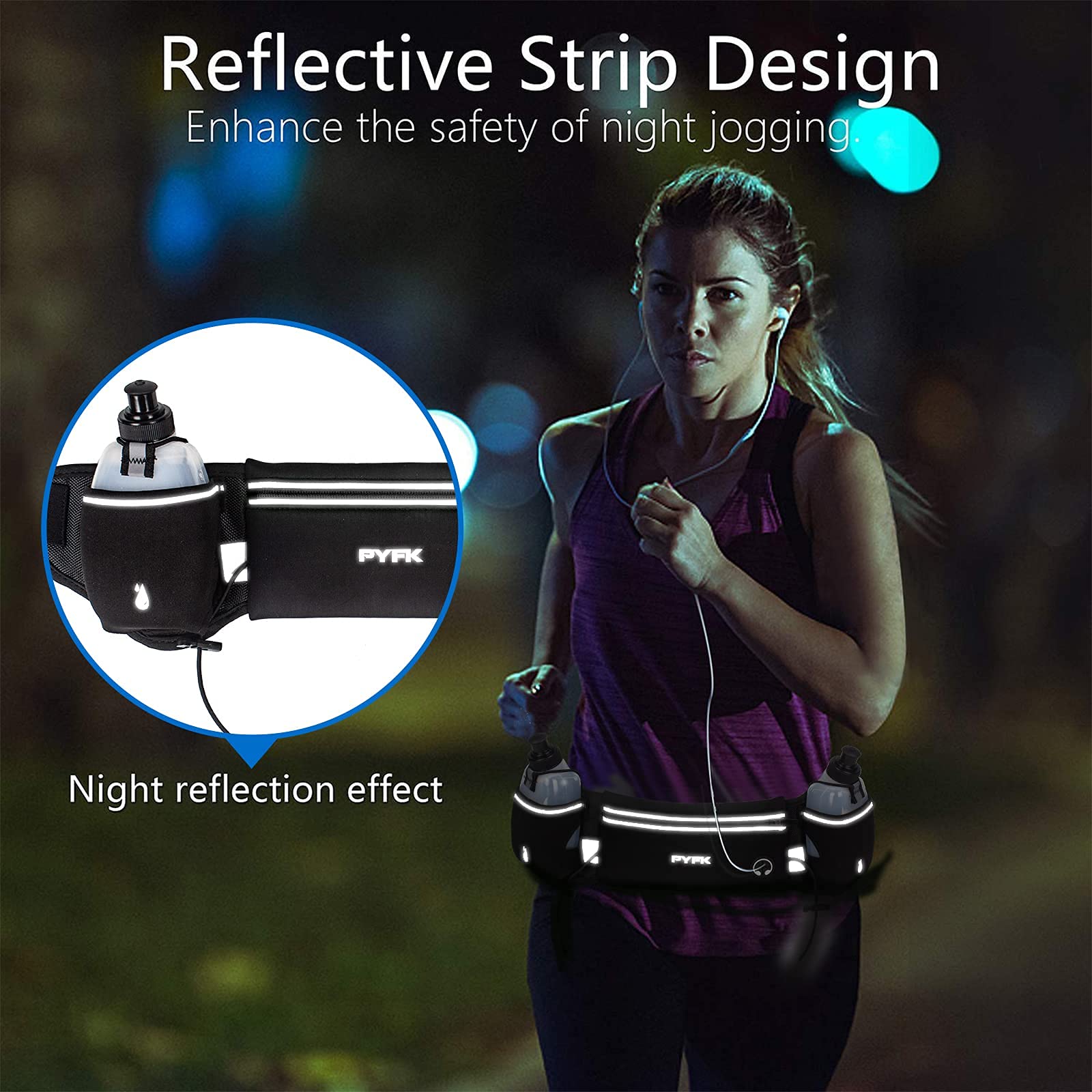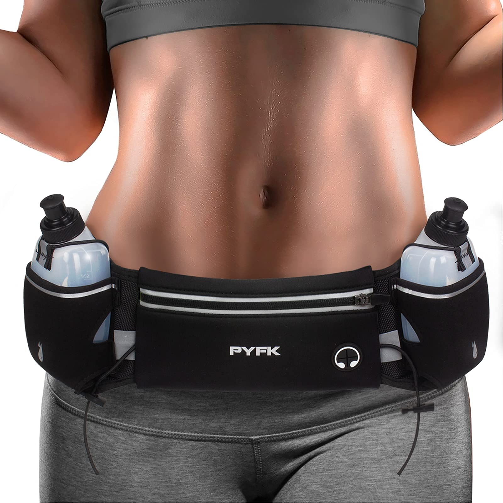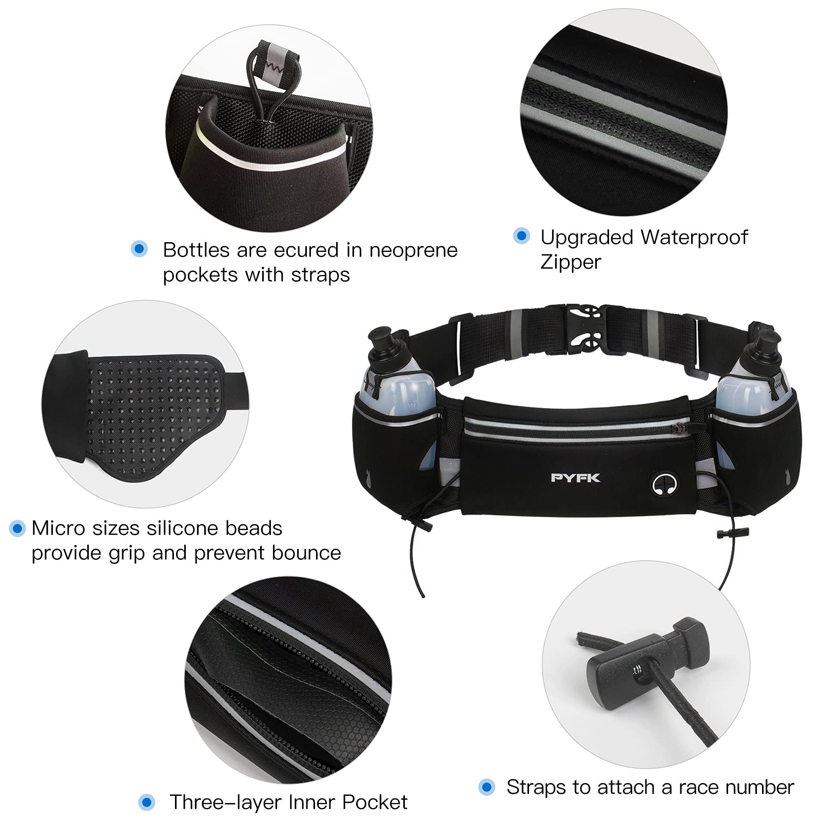 PYFK Running Belt with Water Bottles, Hydration Belt for Men and Women, Water Bottle Holder Running Pouch Water Belt, Fanny Pack Fits 7 inches Phones, Waist pack for Runner Jogging (black(black))