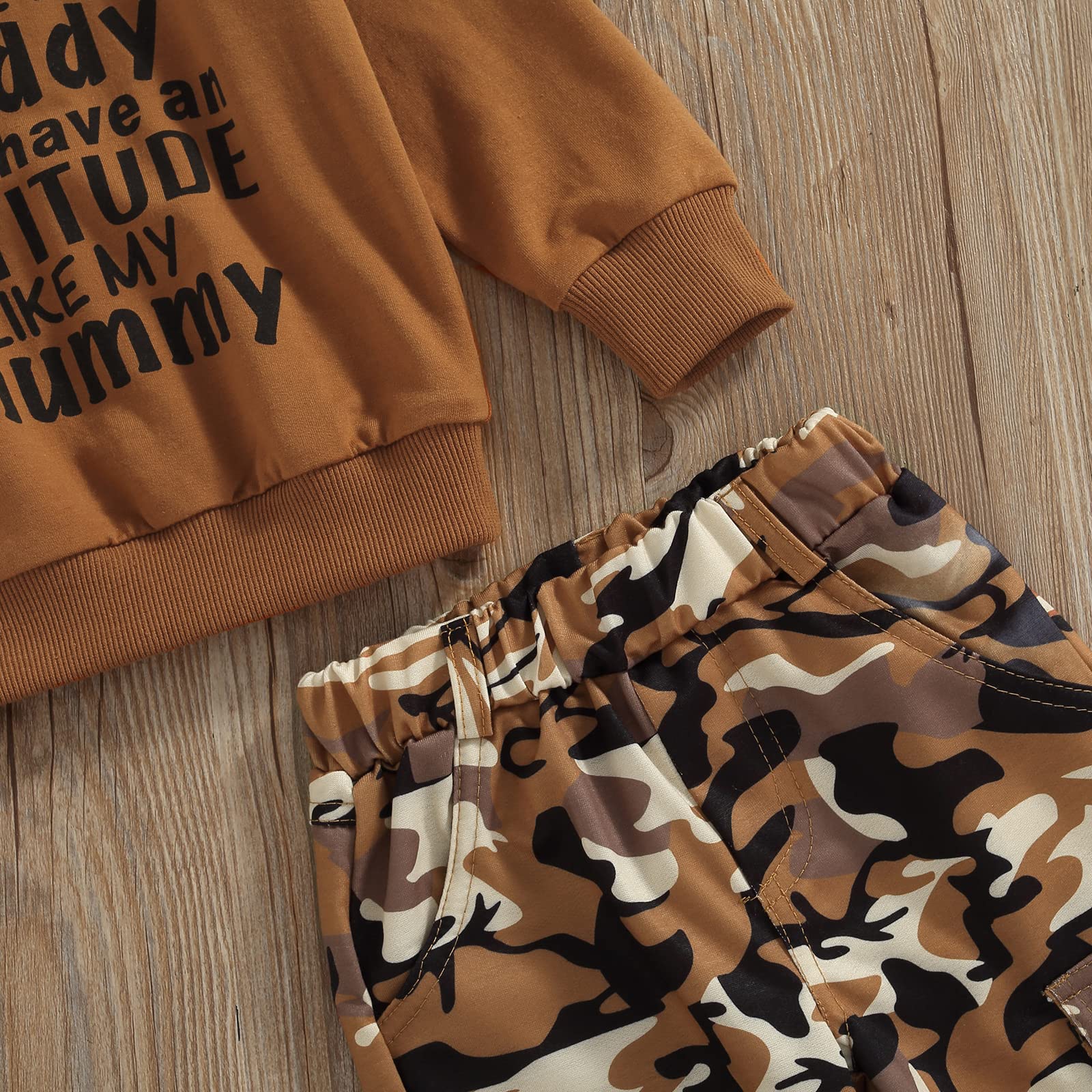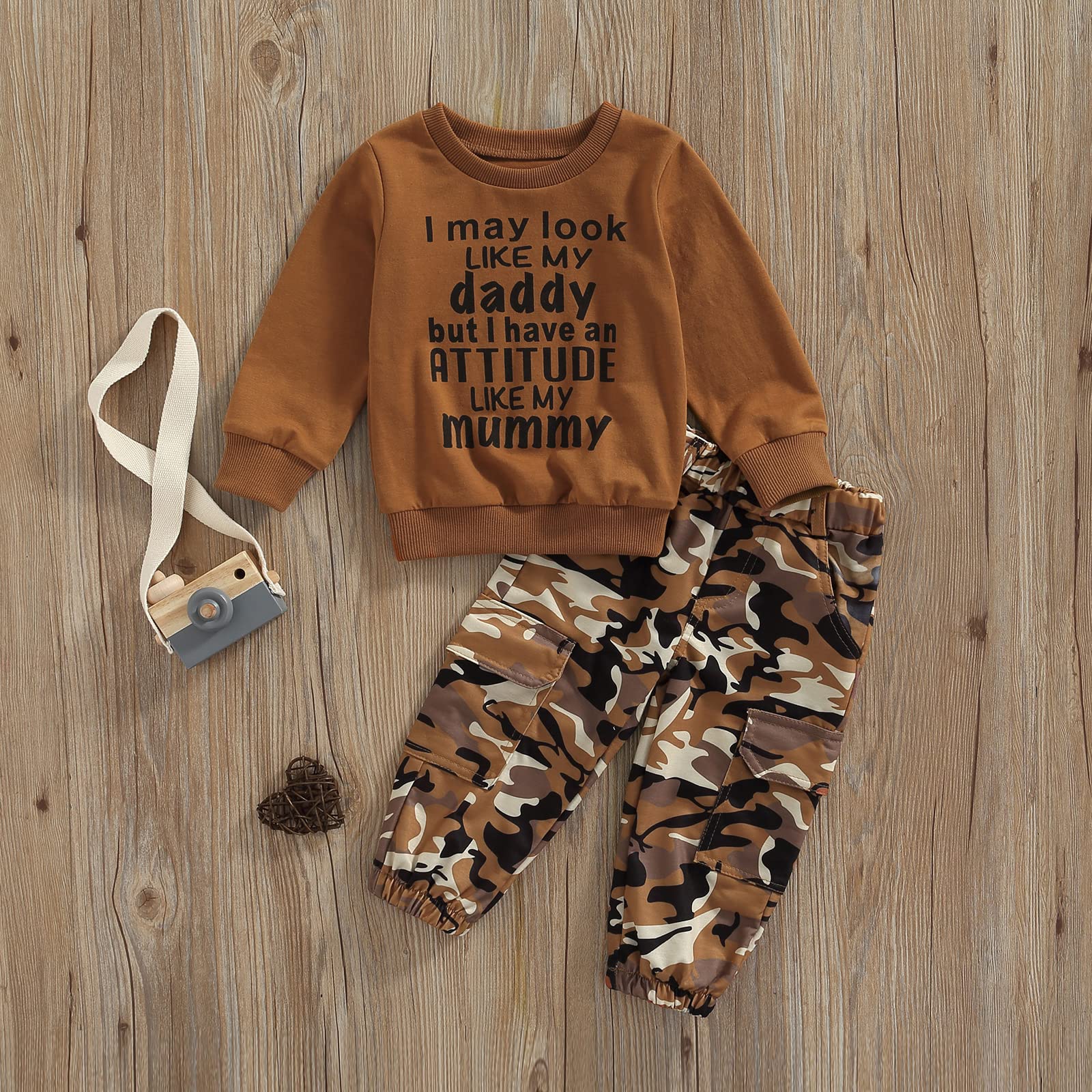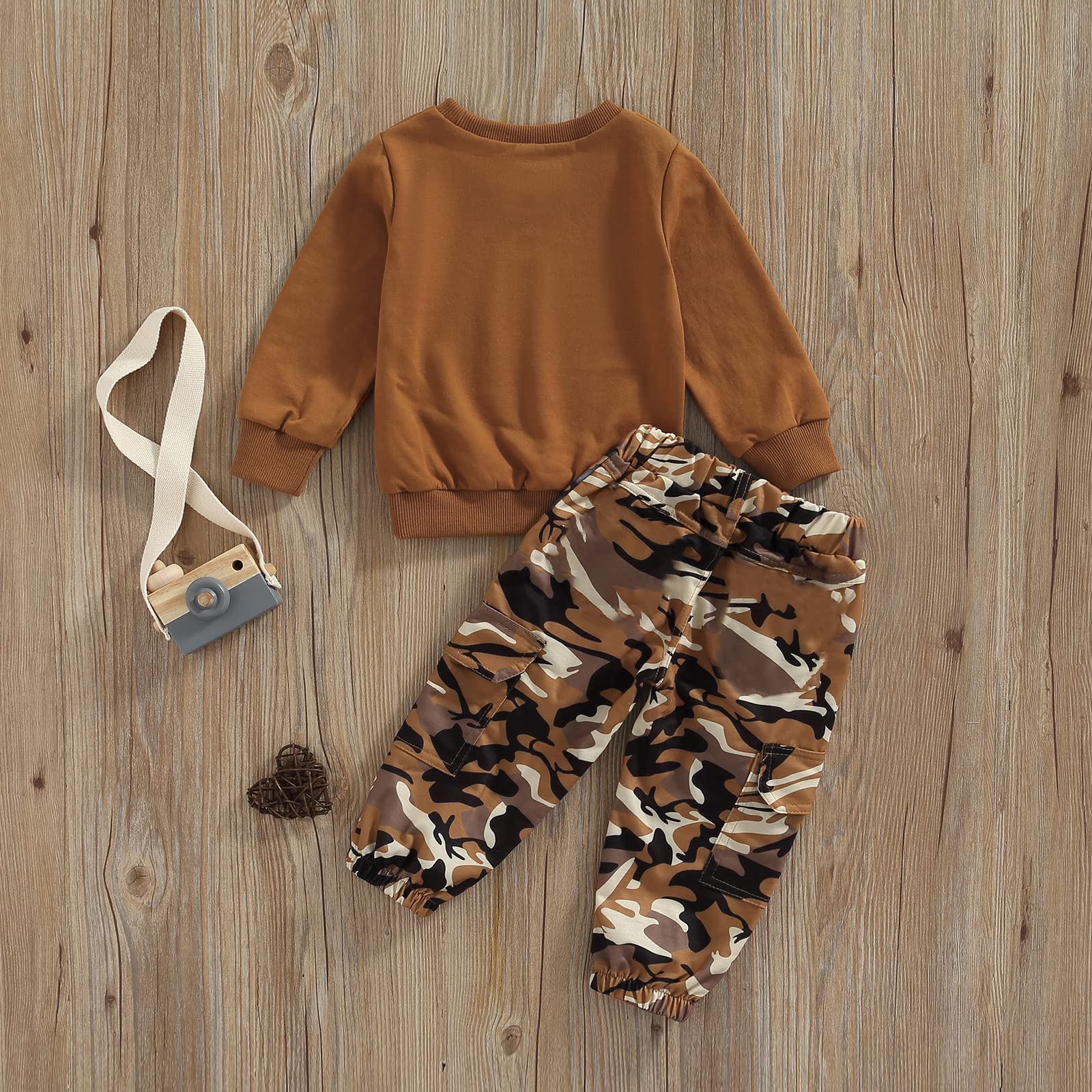 ♥Design: Baby girl fall outfits, pullover sweatshirt features letter print, long sleeves and a round neck. Trousers feature camouflage print and pockets.