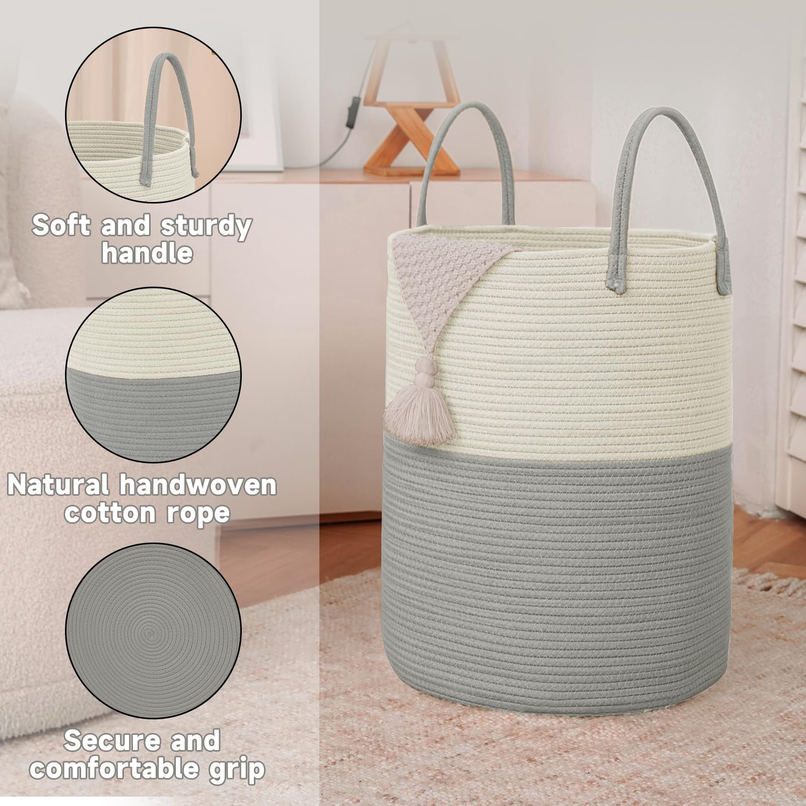 STYLISH & VERSATILE DECOR -- Elevate the aesthetic of your home with our cotton rope woven laundry baskets, as its stylish, minimalist design easily holds 5 rolled blankets and adds a touch of sophistication to your bedroom or living area