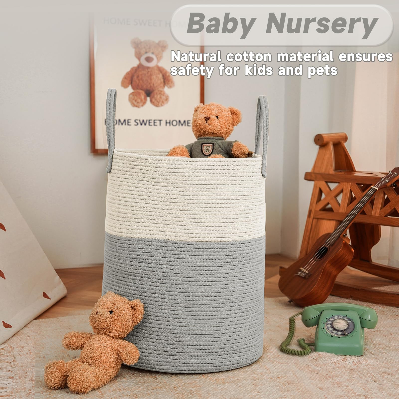 EXTRA LARGE 60L/80L/100L CAPACITY -- Elevate your home organization with our sturdy nursery hamper that stands up straight without tipping. Ideal for use in the living room or bedroom, it efficiently stores items like toys, clothes, and 3 to 5 thick throws to keep your living space tidy and stylish