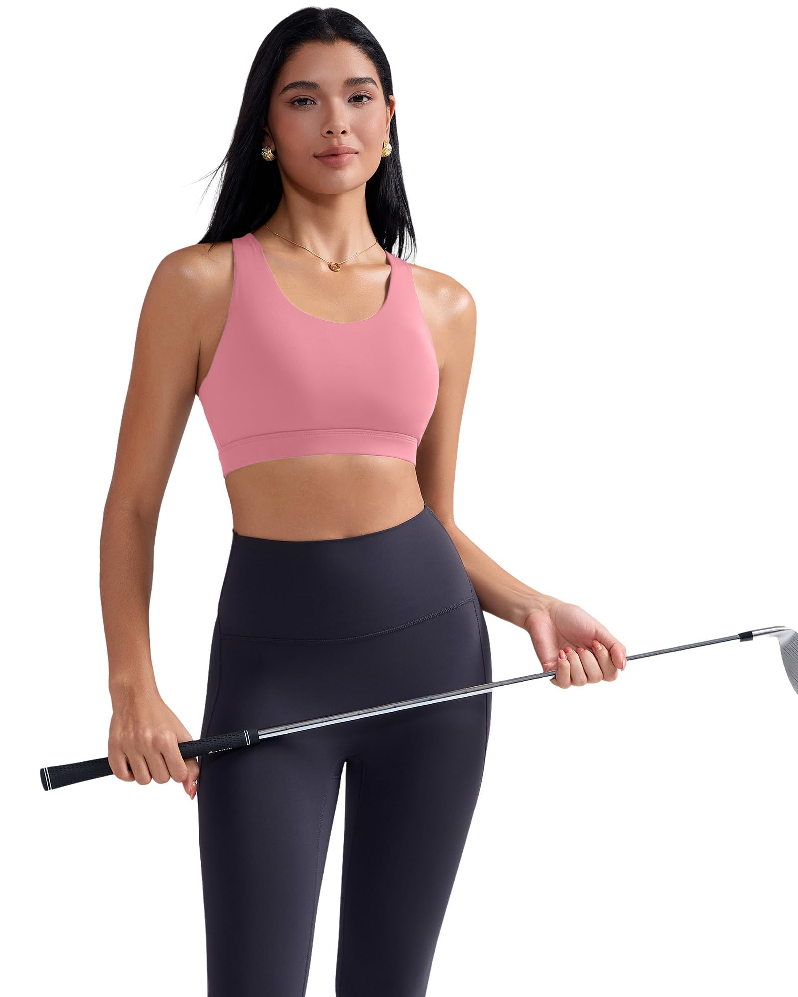 UNIQUE DESIGN:Criss Criss-cross back detailing gives the V-neck Bra its signature style. But it doesn't just look good, it's hard working. Heat transfer tech, a lined shelf bra, and the sports bra for women wrapped in durably soft performance stretch fabric keep you comfy and supported.The cotton-like meterial, soft and comfortable to wear.Crisscross back straps let you twist with ease, Sexy Crossback design offers a extra back support, fashionable and stylish, Stretch Fit Sports Yoga Gym Bra.