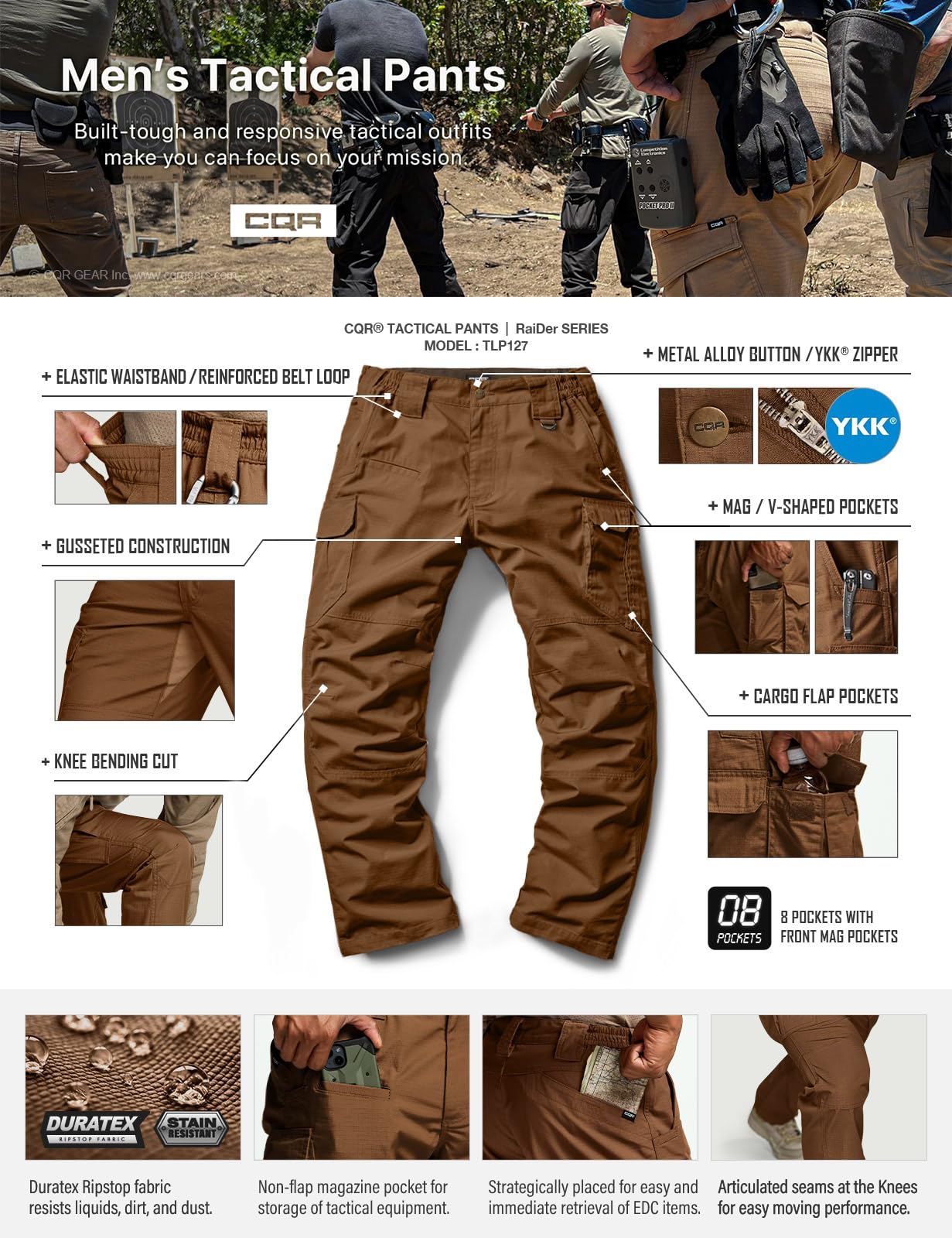 CQR Men's Tactical PantsSeries designed for law enforcement, military, and outdoor activities.