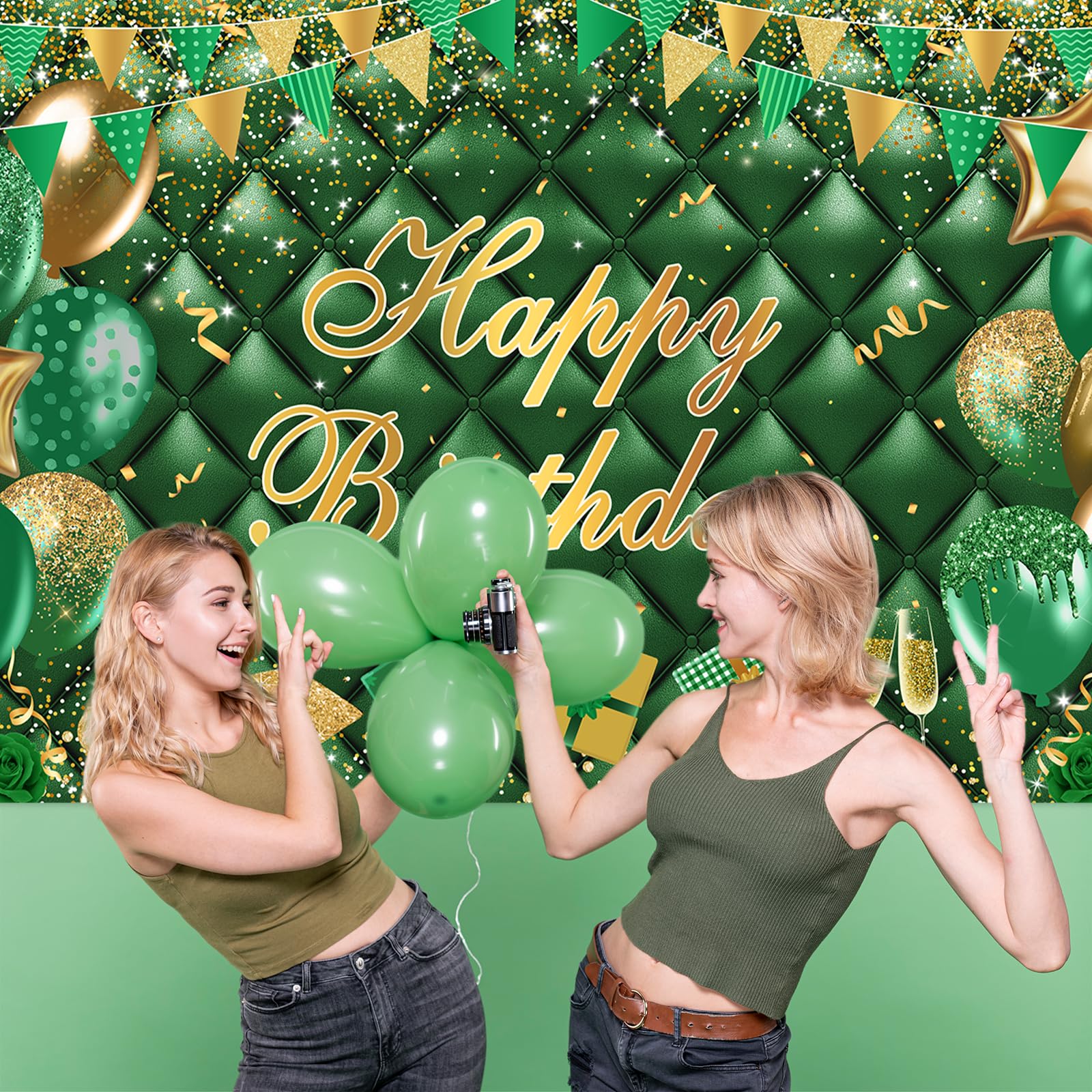 CELEBRATE IN STYLE: This bright and colorful green happy birthday backdrop creates a festive backdrop for photographs; Made of high-quality polyester fabric that will maintain its vibrant colors even after repeated use, with string for easy hanging