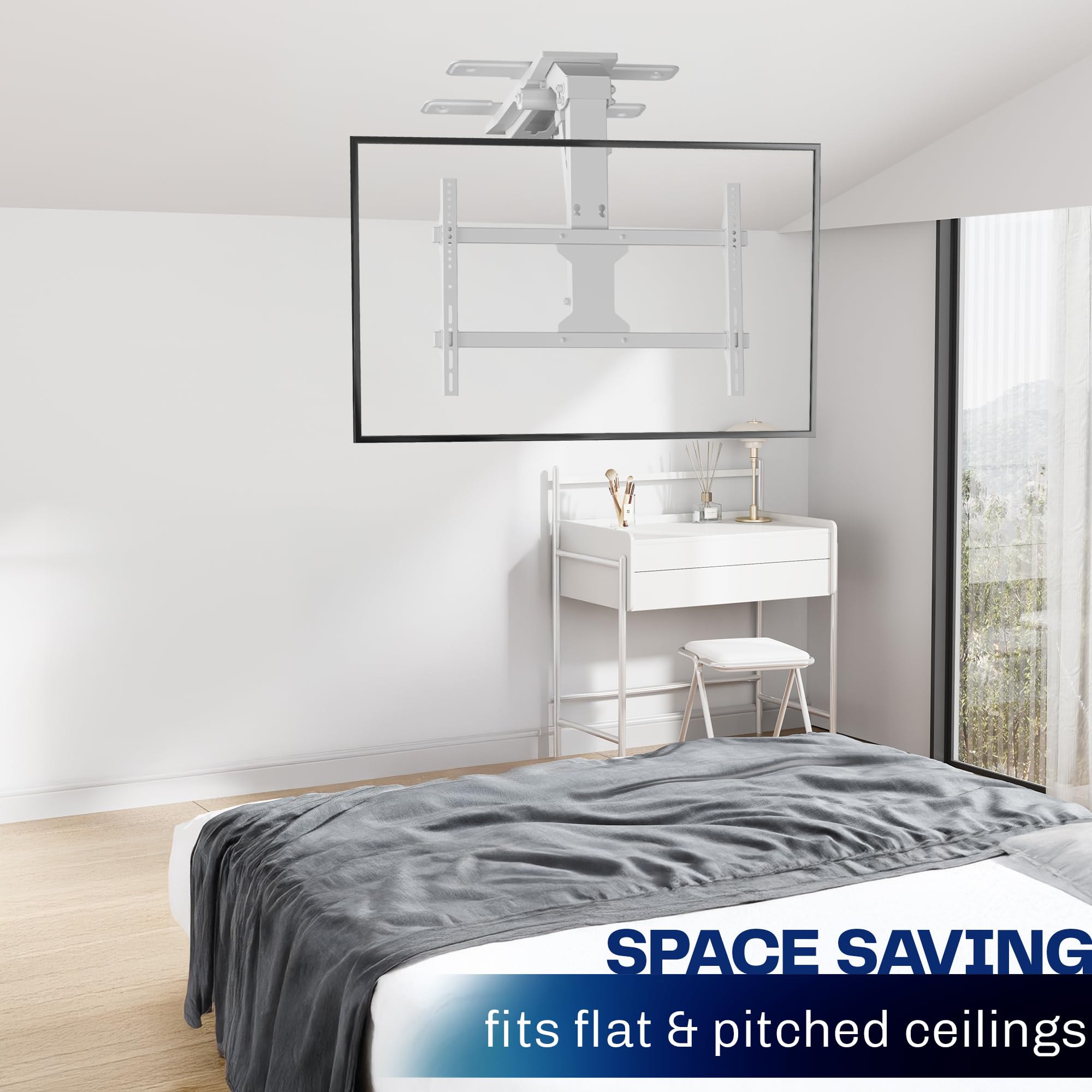 Flip-Down TV Mount: Fits 37” to 70” screens with VESA 200x100, 200x200, 300x200, 300x300, 400x200, 400x300, 400x400, 600x200, 600x300, or 600x400mm. Please Note: For TVs over 65", VESA holes should be centered to provide enough clearance from the ceiling