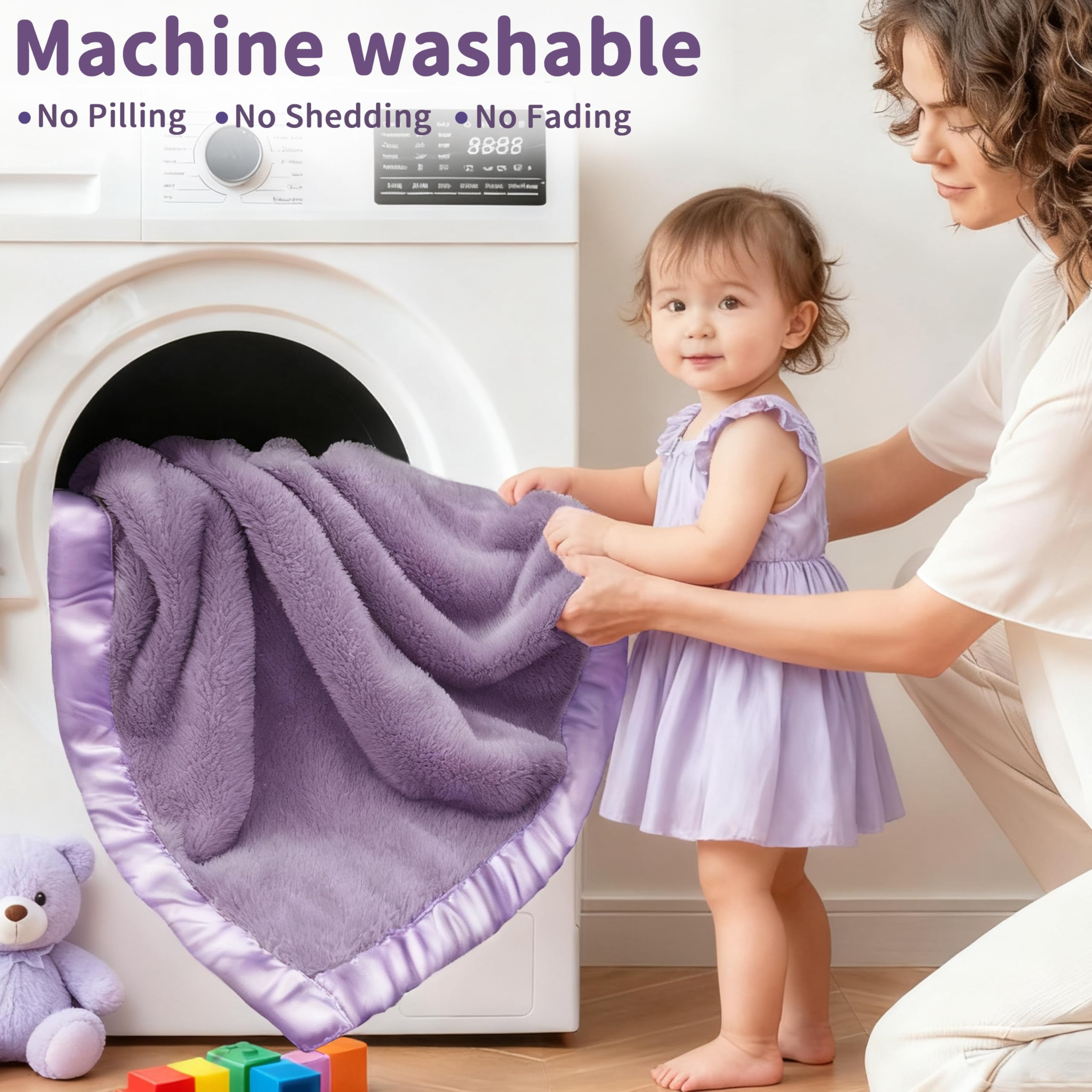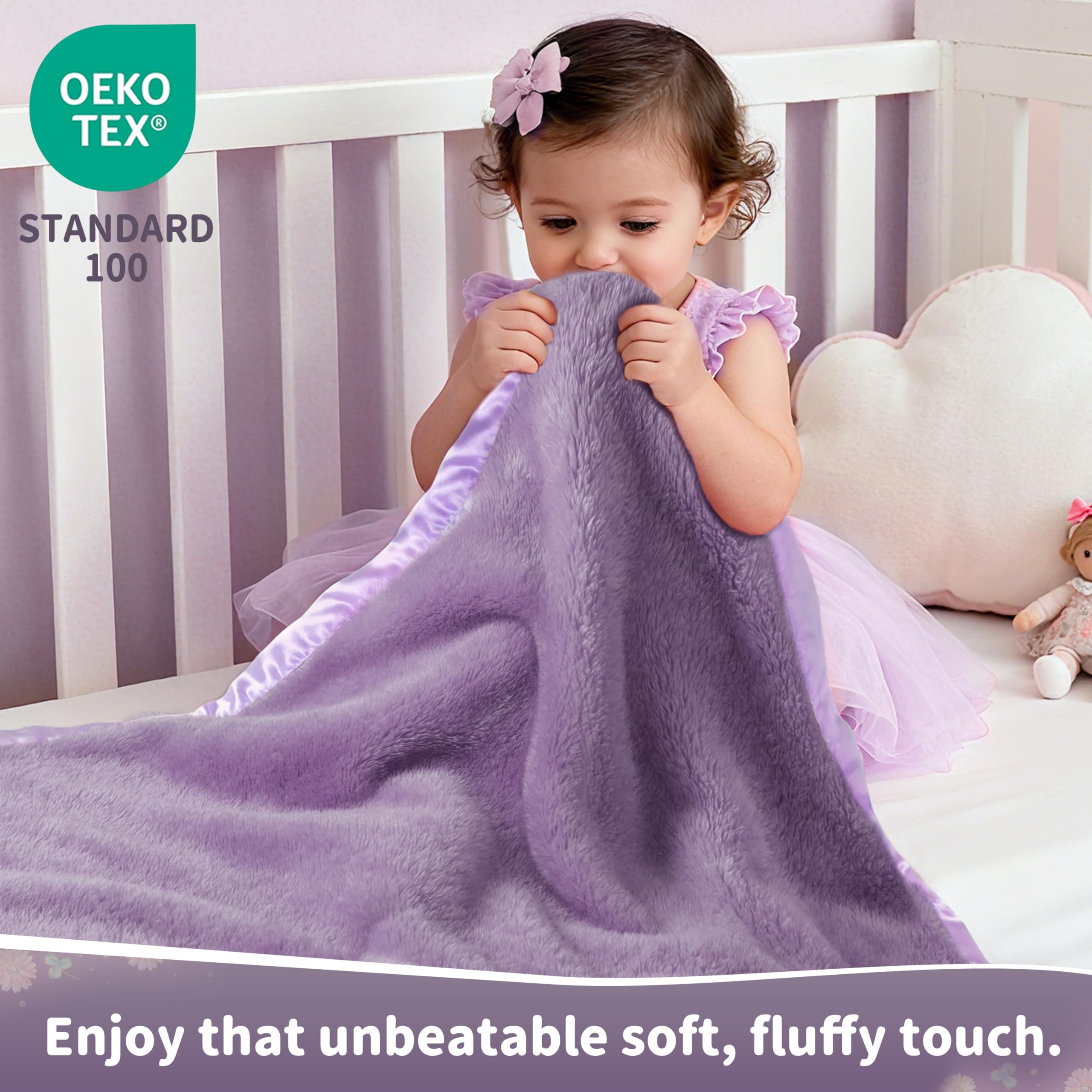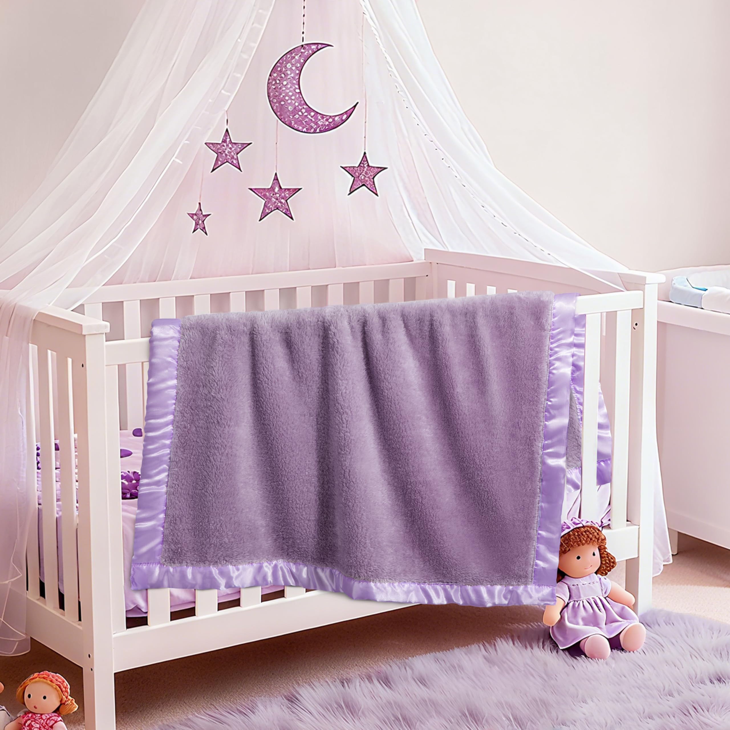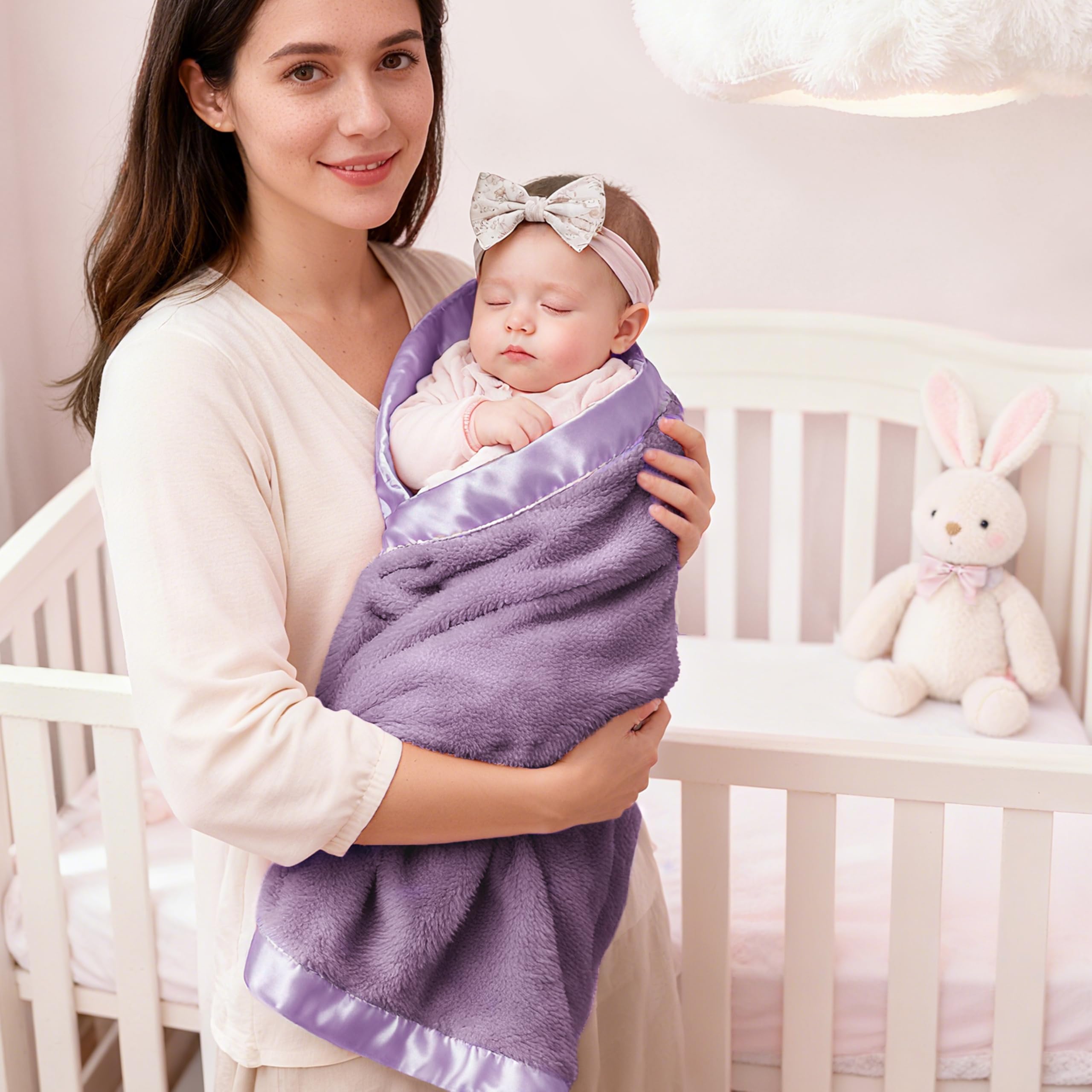 【Adorable & Thoughtful Design – With Luxe Satin Trim】: Finished with a silky 2-inch satin border, this blanket brings both elegance and comfort. The satin trim adds a stylish accent to cribs, strollers, or nursery décor—your baby will look even cuter wrapped in love