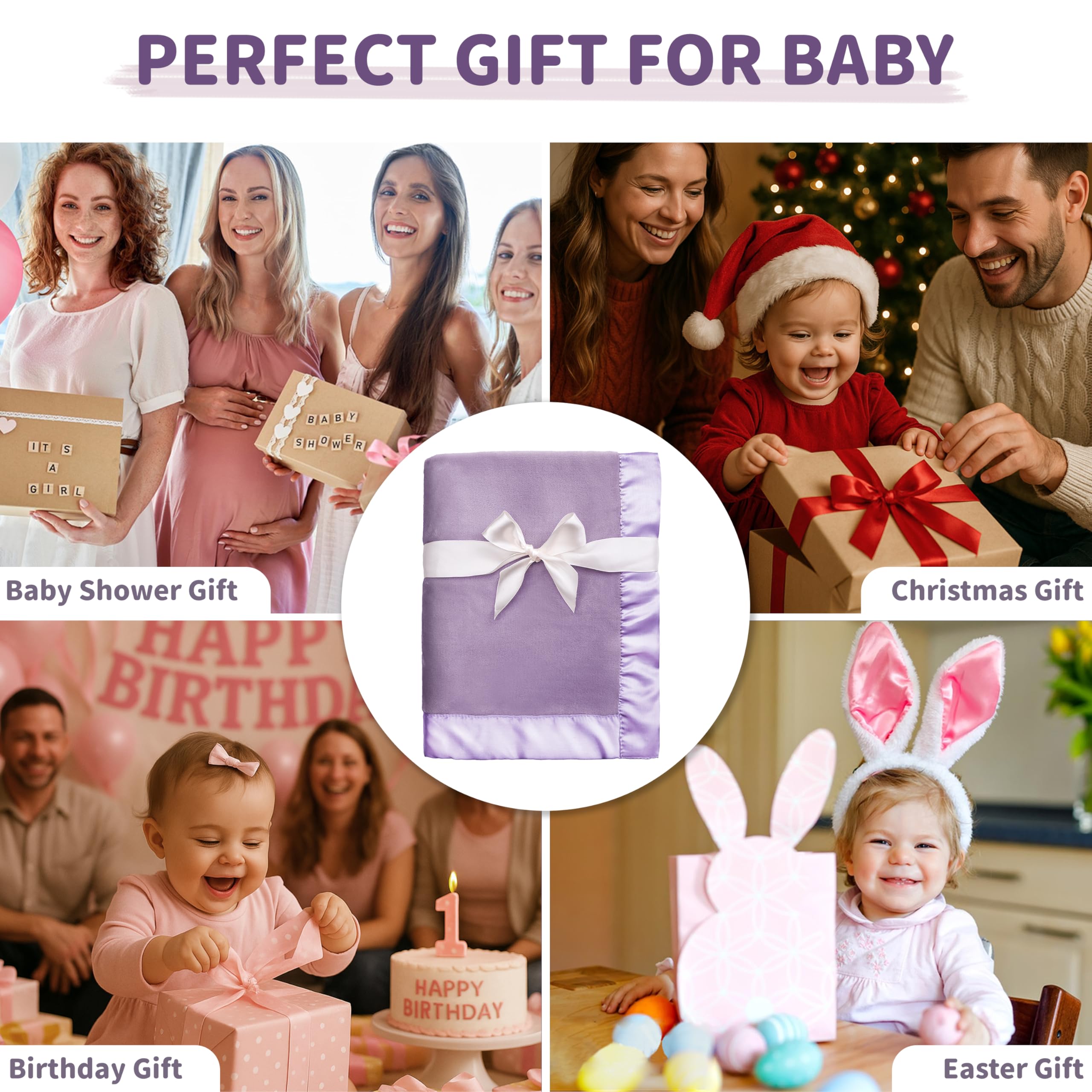 【Thoughtful Gift – With Bow Ribbon】: Perfect for baby shower, birthday, Easter, or Christmas, this cozy blanket comes gift-ready with a delicate bow ribbon. Available in classic colors like pink, blue, purple, gray, and black—ideal for baby boys, girls, or as a gender-neutral option. Its plush softness also makes it great for pets as a snuggle blanket