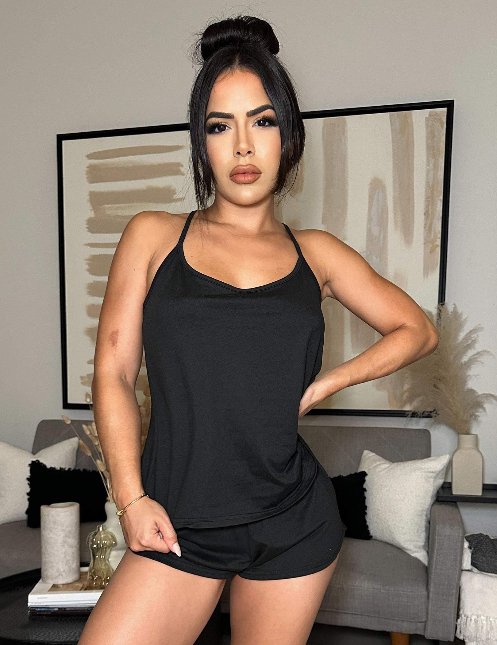 Stylish Spaghetti Strap Design: This set features a trendy spaghetti strap top with a flattering round neckline, perfect for a sexy and feminine look.