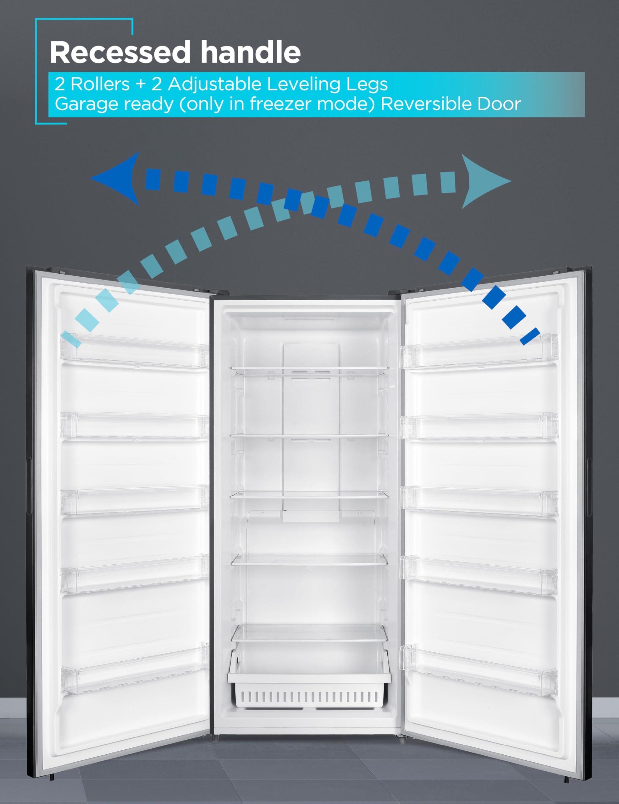 Convertible Design: This versatile 21.2 cu. ft. stand up freezer effortlessly transitions to a full size refrigerator, offering adaptable freezer storage and food storage solutions for various needs