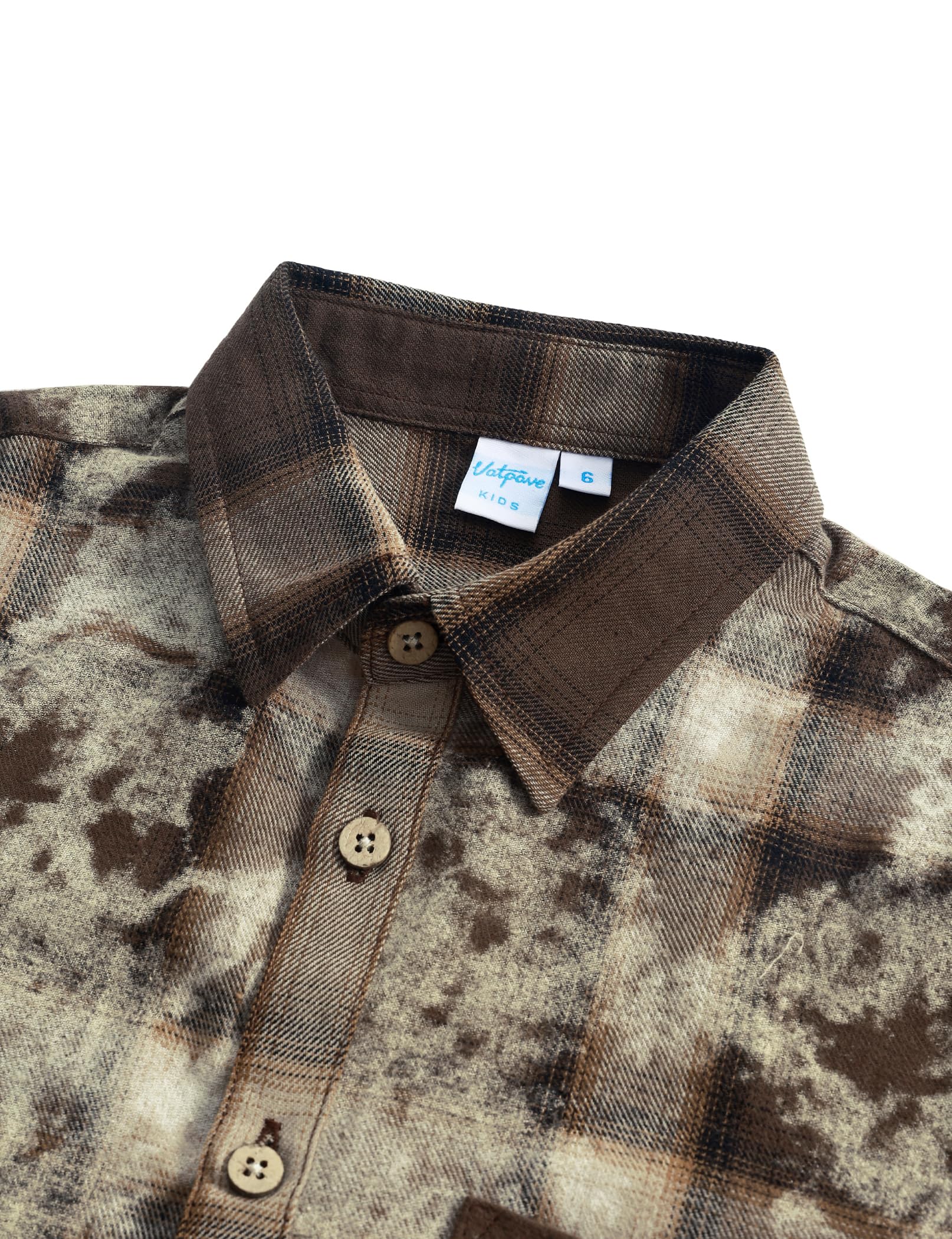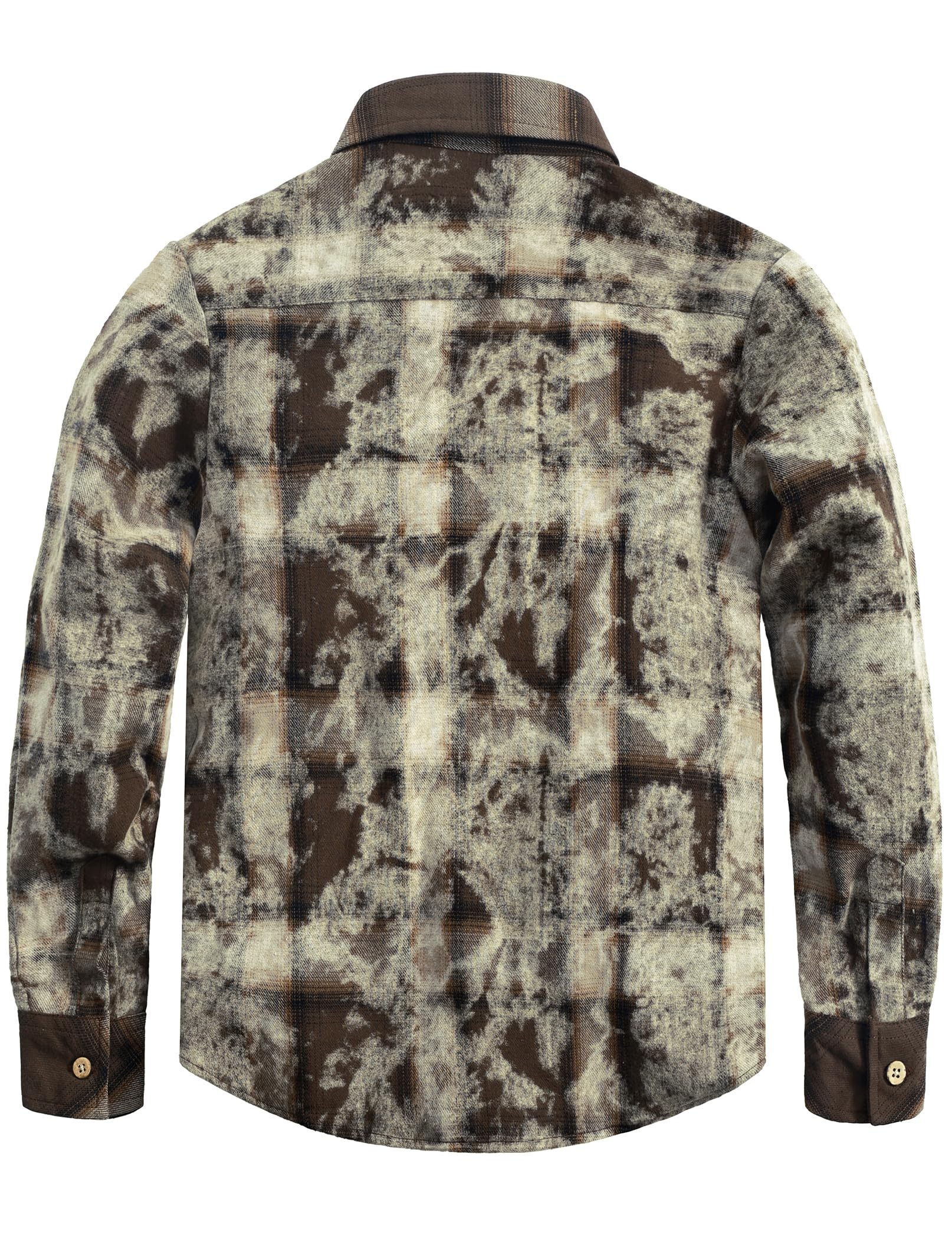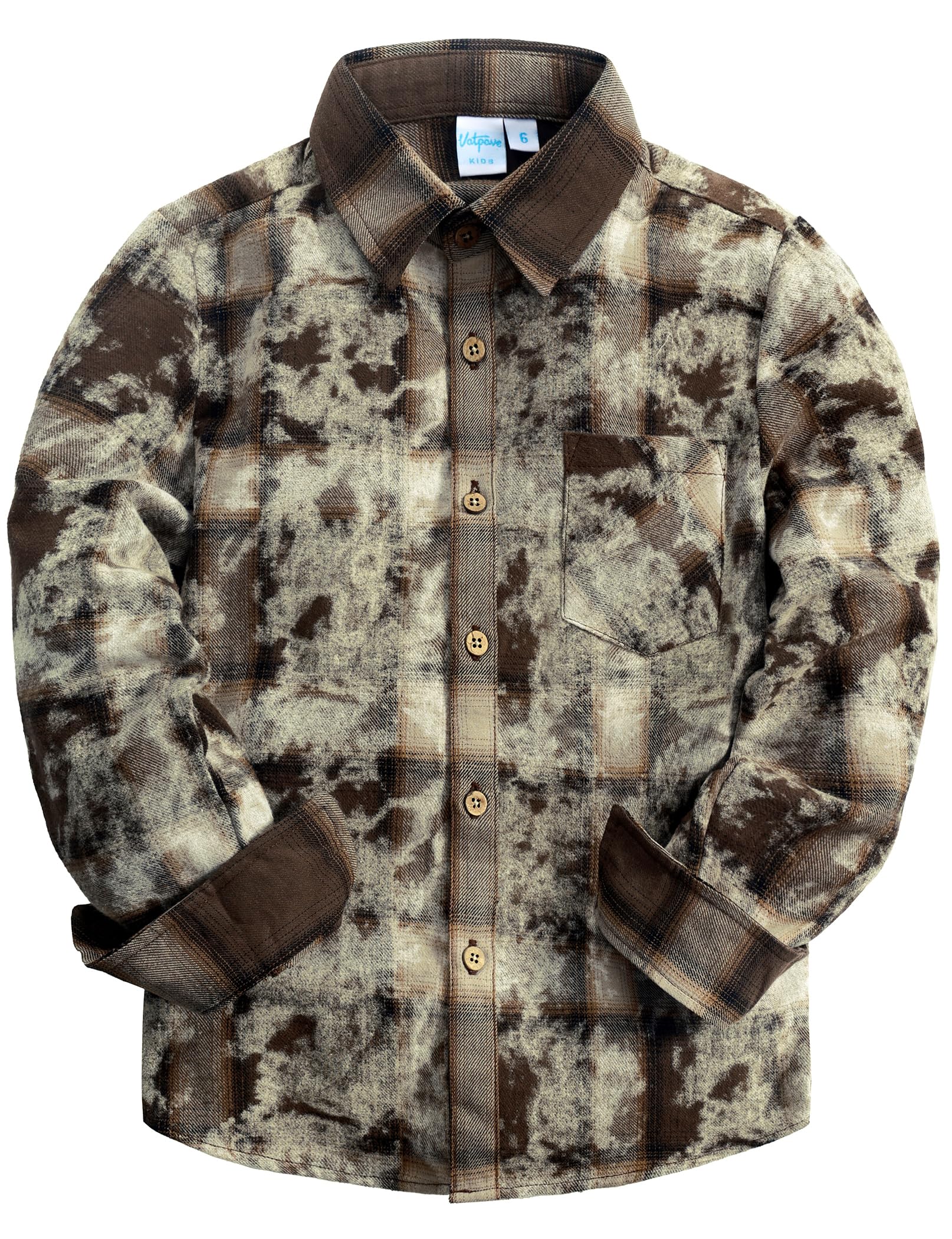 Designs: Boys long sleeve button down shirts design feature round hem,single chest pocket,buttoned cuffs,contrasting color.The combination of grid patterns and tie-dye craftsmanship, adding liveliness and fashion sense boys flannel shirts