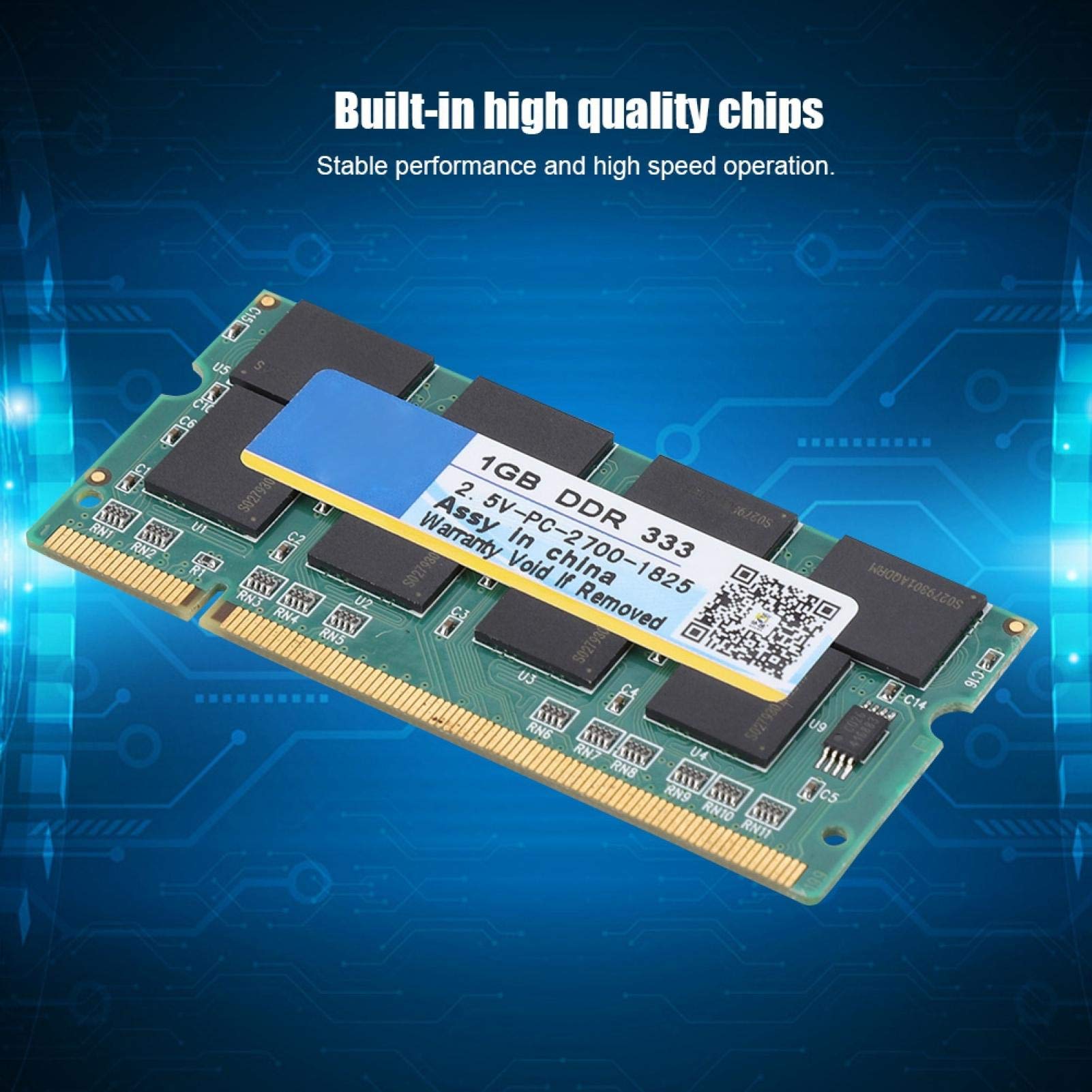 Features: Suitable for DDR PC-2700 laptops, compatible with motherboards for and for . Built-in chips: Stable performance and high speed . High memory speed of 333MHz: Increases the speed of your computer and brings convenience to your life. 1G capacity: Provides powerful performance and storage for everyday reading and writing. High-quality circuit module board: Avoids and wear, is and easy to carry. Spec: Model: DDR Memory frequency: 333MHz Memory capacity: 1G Compatible: fully compatible for / Compatible computer: notebook Bandwidth: PC-2700 Voltage: 2.5V Pin number: 200pin Product size: approx. 6.8*3.2*0.3cm / 2.7*1.3*0.1 inch Package List: 1 * Notice: Memory is divided into DDR, DDR2, DDR3 . Please refer to the following list to know what memory your computer has installed and what memory you have to purchase. If you don't know which memory is right for your computer, use a software test to see what memory your love machine needs. After running the software, look at the maximum bandwidth column of the SPD option, you will see PCxx00, as follows: PC2100 is DDR 266 memory PC2700 is DDR 333 memory PC3200 is DDR 400 memory PC4200 is DDR2 533 memory PC4300 is DDR2 533 memory PC5300 is DDR2 667 memory PC6400 is DDR2 800 memory PC8500 is DDR3 10