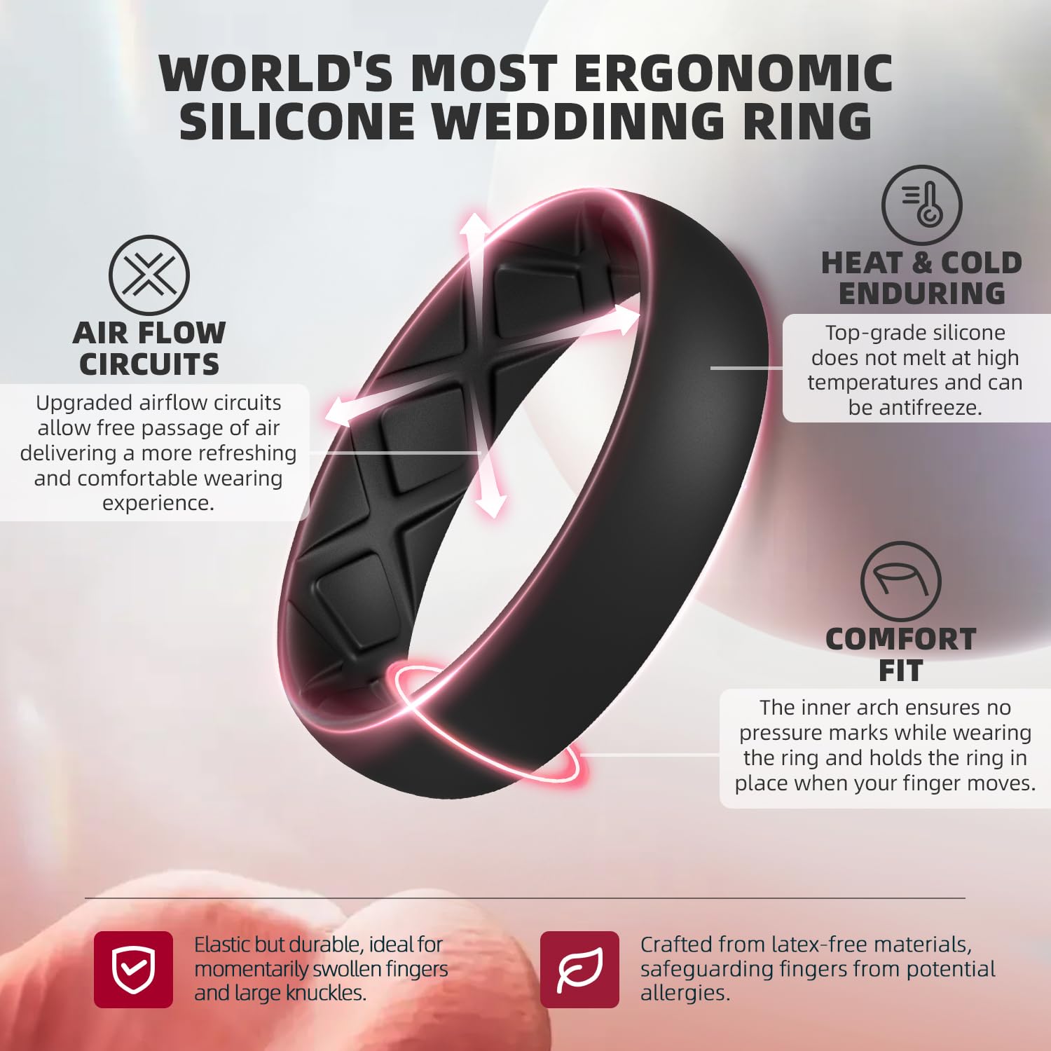 BREATHABLE & ERGONOMIC: Upgraded airflow circuits enable a refresh and cooling wearing experience. The inner archs ensures no pressure marks and holds rings in place while fingers move.