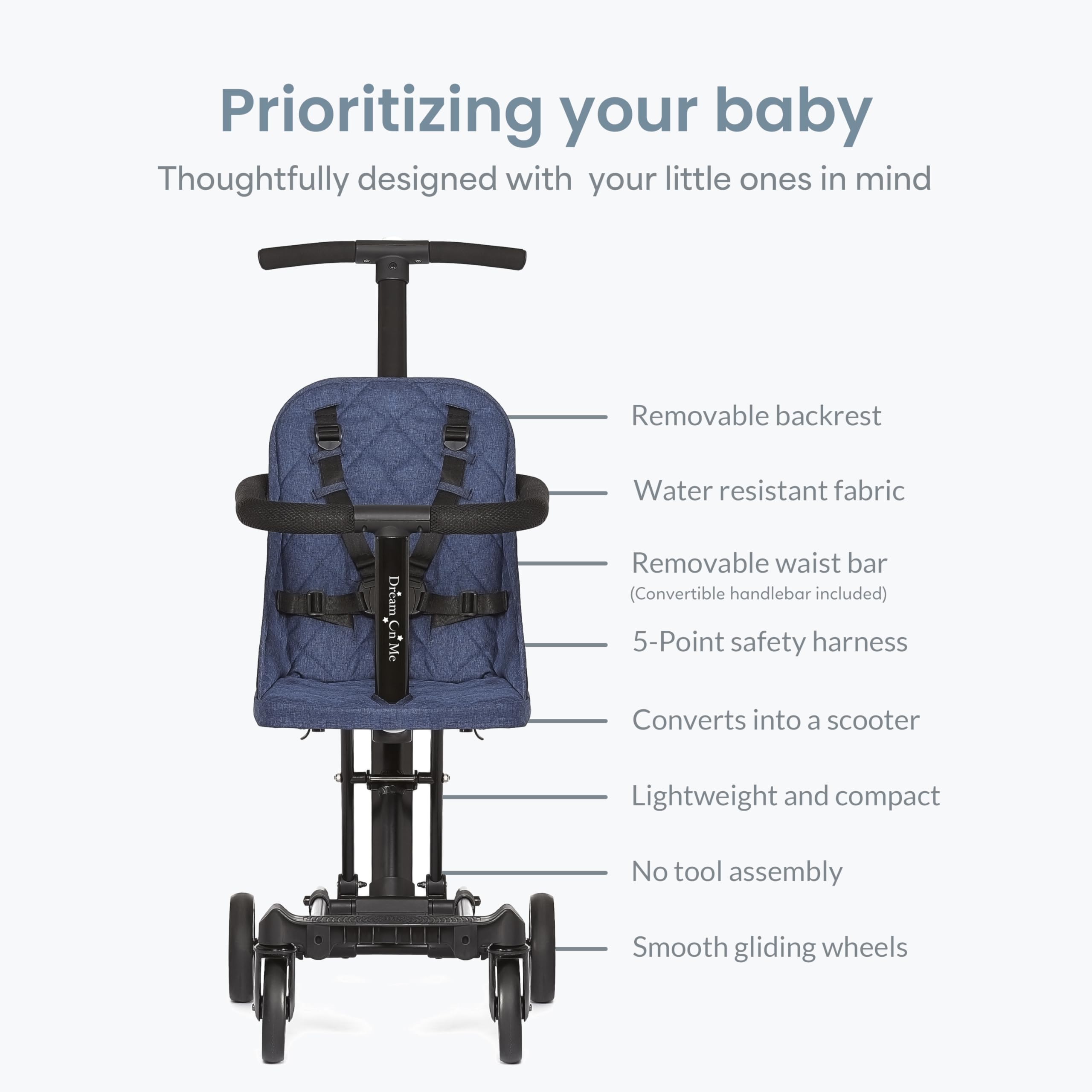 Every great adventure begins with a smooth ride β and for families on the move, the Dream On Me Coast Rider Travel Stroller is the perfect companion. Thoughtfully designed for modern parents, this stroller blends functionality, comfort, and safety in a lightweight, compact frame thatβs built to go wherever life takes you. Weighing just 13.5 lbs, the Coast Rider is crafted from durable aluminum, offering long-lasting performance without added bulk. Whether itβs navigating crowded city streets, boarding a flight, or fitting into a compact car trunk, this strollerβs sleek, easy-to-maneuver design makes every outing feel effortless. Parents love its innovative book-fold mechanism, which folds flat in seconds β ideal for air travel, road trips, or apartment living. Compact yet sturdy, itβs perfectly sized for families who value convenience without compromise. And for those special days out, the Coast Rider is theme park approved, ensuring hassle-free entry and smooth cruising through your favorite destinations. The adjustable handlebar ensures comfort for parents of all heights, while soft-ride wheels glide effortlessly across sidewalks, malls, and park paths. Add in the secure 5-point harness, and youβve got a stroller that guarantees a safe and cozy journey for your little one. But the Coast Rider isnβt just a stroller β itβs a versatile mobility system that grows with your child. As your little explorer gets older, it converts into a rider or scooter, offering a fun, flexible, and long-term solution for every stage of their development. To enhance your experience even further, optional accessories like the Coast Rider Canopy (for sun protection) and Coast Rider Connector (to link with another stroller or shopping cart) are available separately β transforming this stroller into a customized tandem travel system for busy families. Recognized for excellence, the Coast Rider has earned multiple prestigious awards, including the JPMA Innovation Award, Baby Maternity Product of the Year, and National Parenting Product Award. It meets and exceeds ASTM and CPSC safety standards, ensuring every ride is as safe as it is enjoyable. Compact yet spacious, it measures 28β L Γ 14β W Γ 37.5β H and supports up to 45 lbs. Whether youβre strolling through the park, traveling across the country, or heading out for a weekend getaway, the Dream On Me Coast Rider Travel Stroller is your trusted, travel-ready partner. β οΈ Safety Note Never leave your child unattended in the Stroller/Rider. The five-point safety harness must be secured at all times when your baby or child is in the stroller/rider. Do not hang shopping bags, purses, diaper bags, or any other items from the handle β additional weight could tip the stroller or cause entanglement, leading to injury. Always follow the manufacturerβs safety protocols for secure and responsible use.