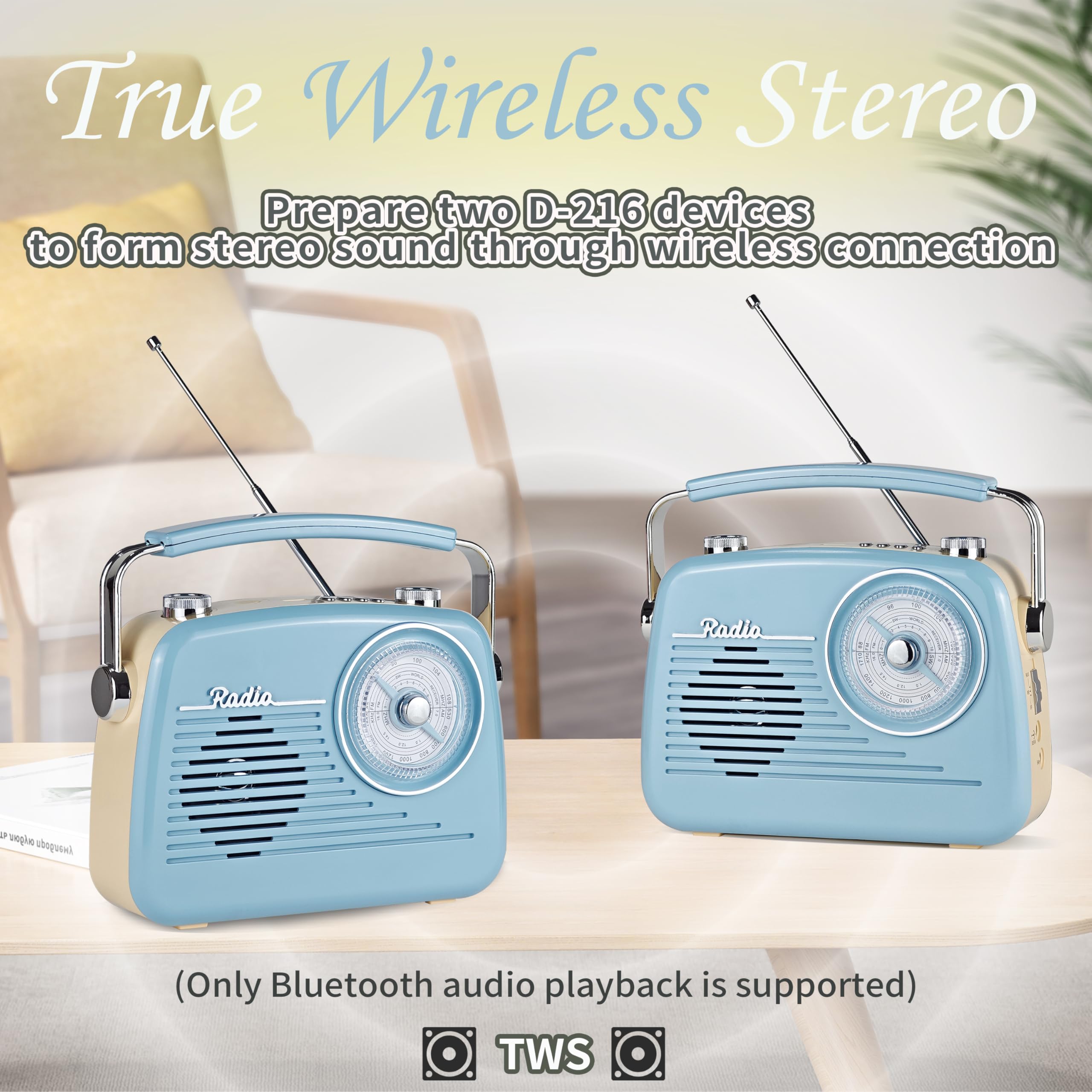 【5-in-1 Multifunctional Player with TWS Stereo】 More than just an AM/FM/SW 3-band radio—with reception ranges of AM: 530-1710KHz, FM: 88-108MHz, and SW: 7.0-16MHz—this 5-in-1 device combines a Bluetooth 5.0 speaker, MP3 player, TF card player, and USB disk player, blending retro style with modern functionality. What’s more, pair two of these radios via Bluetooth to enable True Wireless Stereo (TWS) sound, delivering immersive, surround audio for your favorite music, audiobooks, or podcasts.