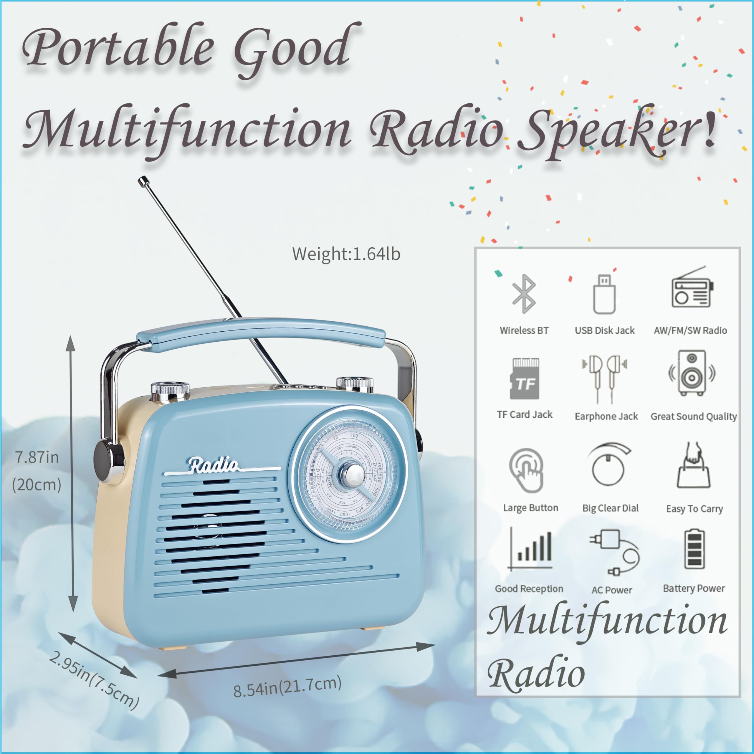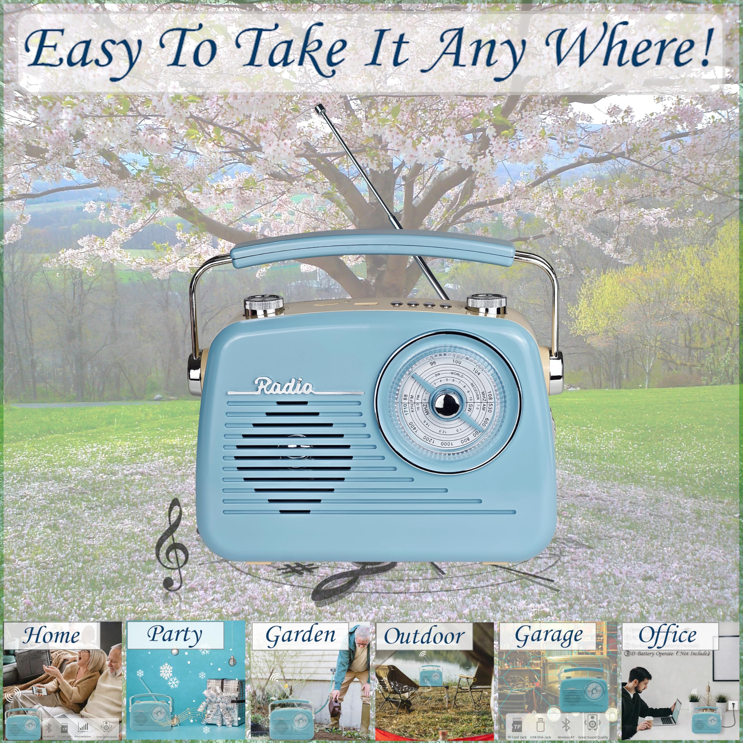 【Portable Retro Design with Easy Carry Handle】 Measuring 6.3x2.16x4.33 inches (LxHxW), this retro radio features a large, sturdy handle for effortless portability—making it your perfect companion for both indoor and outdoor activities. Keep it on the kitchen counter, bedroom nightstand, living room shelf, or office desk for daily use, or take it along for camping, picnics, beaches, and parks without hassle.