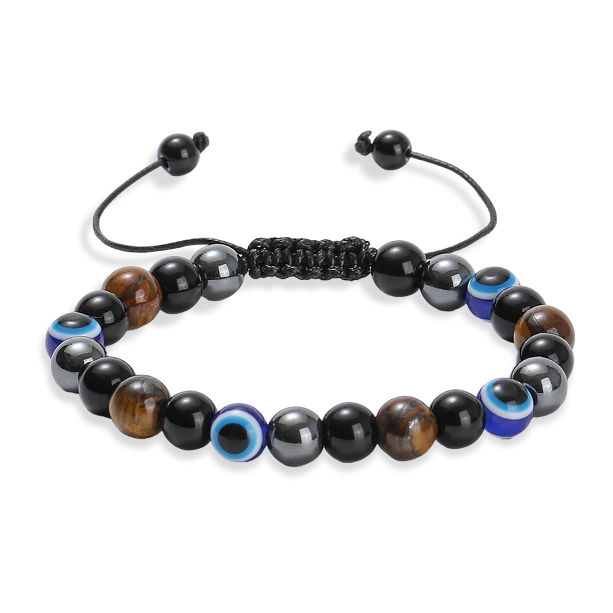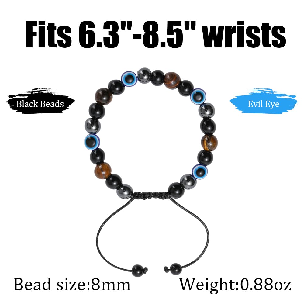 Adjustable size οΌEvil eye bracelet ,the evil eye beads 8mm,are stretchy fit most women&men,the bracelet is adjustable from 4"to max of 9.5", no worry about size.