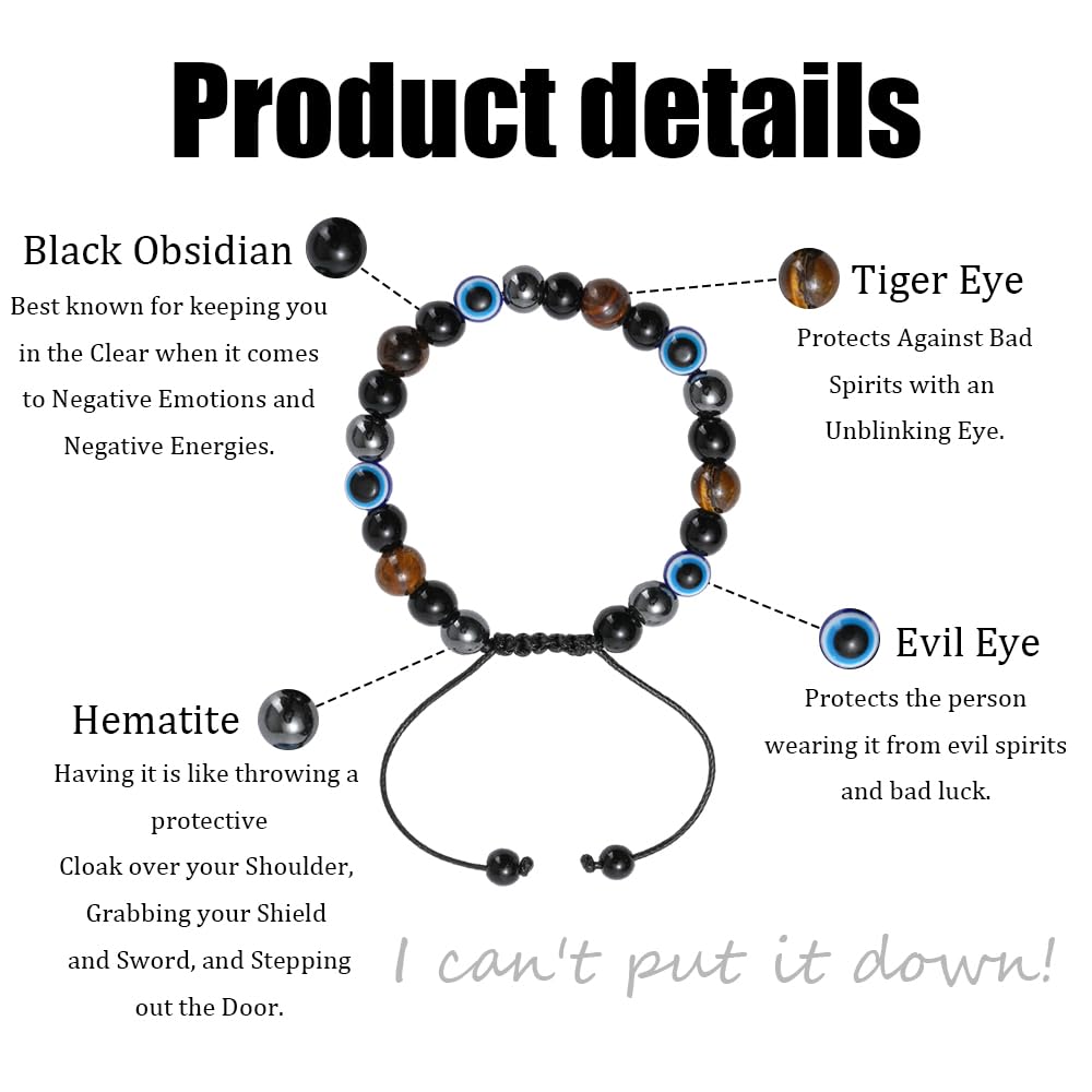 Protection jewelry:Triple Protection Bracelet for Men and Women refers to a combination of Tigers Eye Bracelet, Black Obsidian Bracelet and Hematite Bracelet. All shields against Negativity and keeps you Boosted.