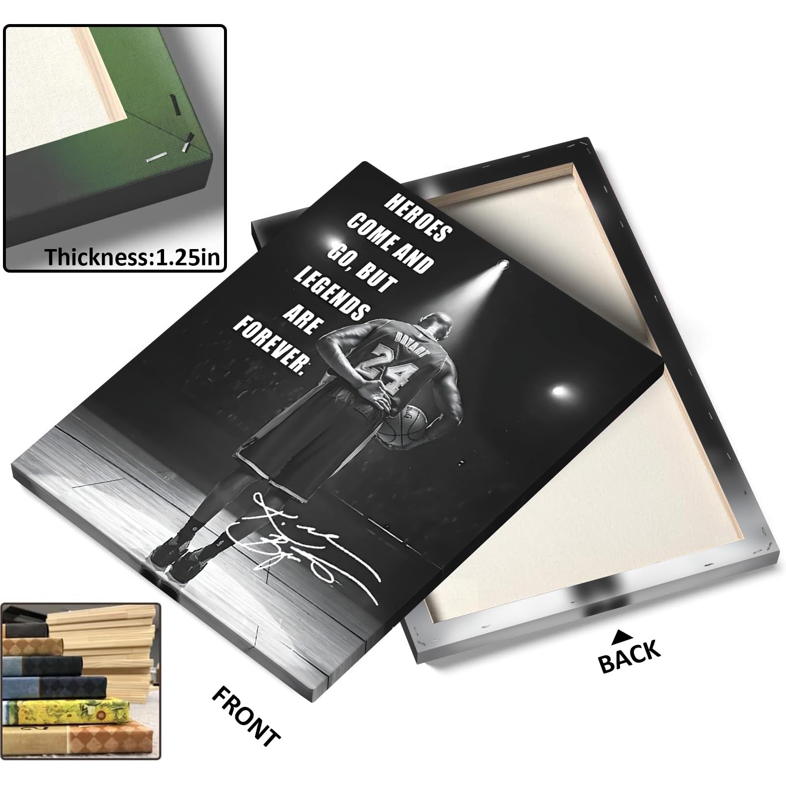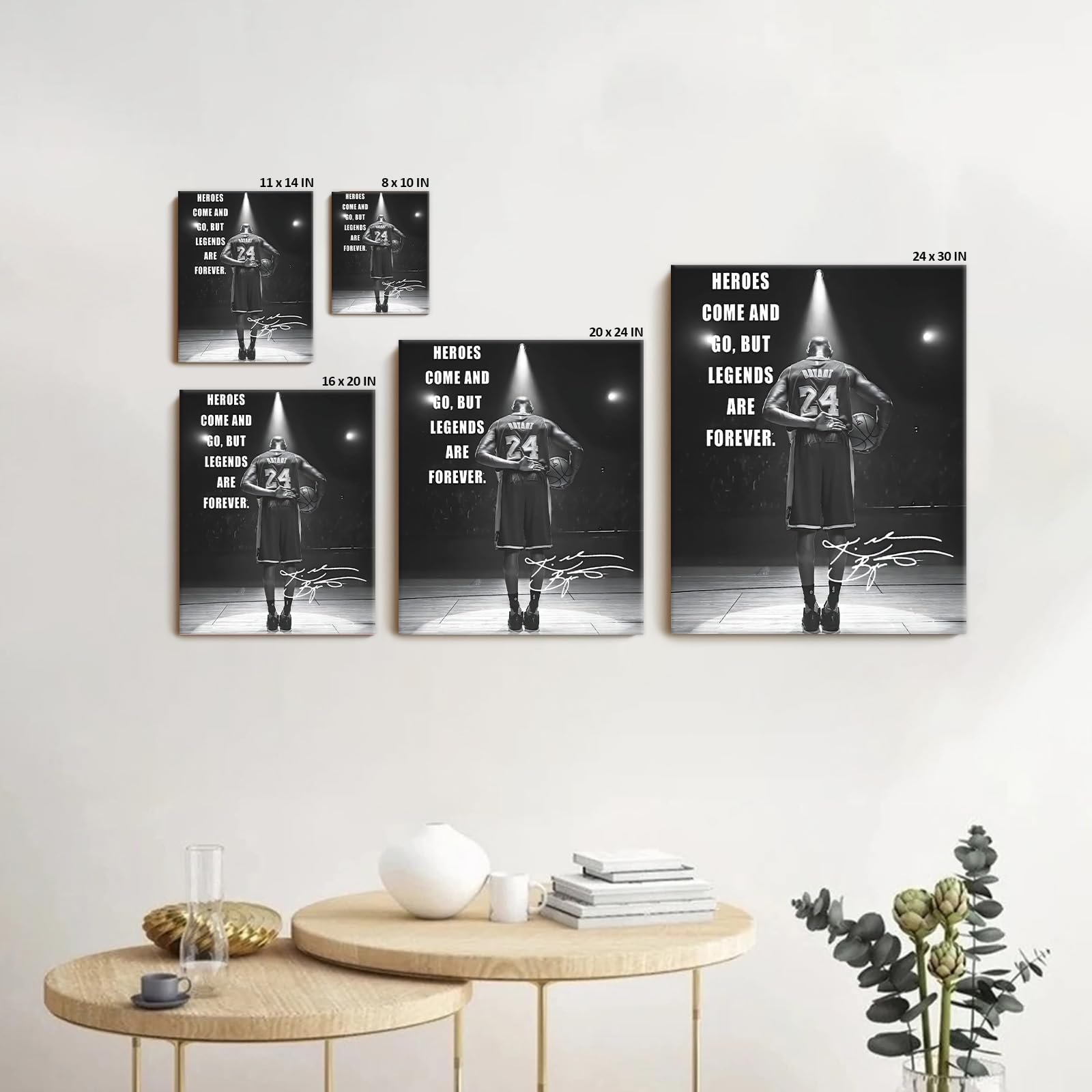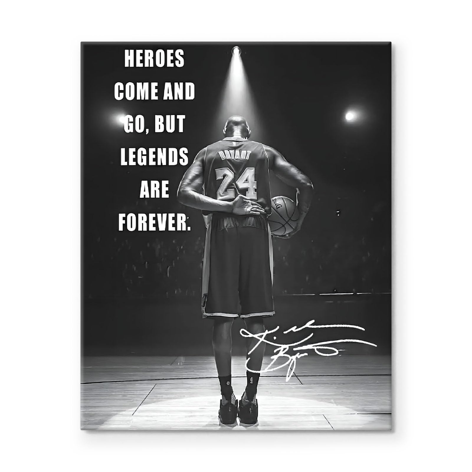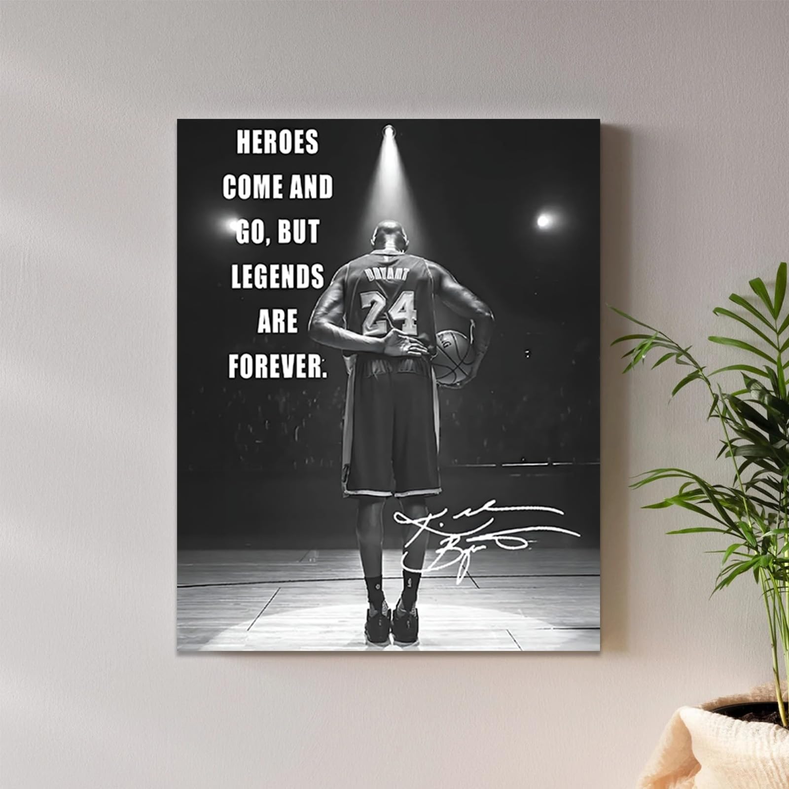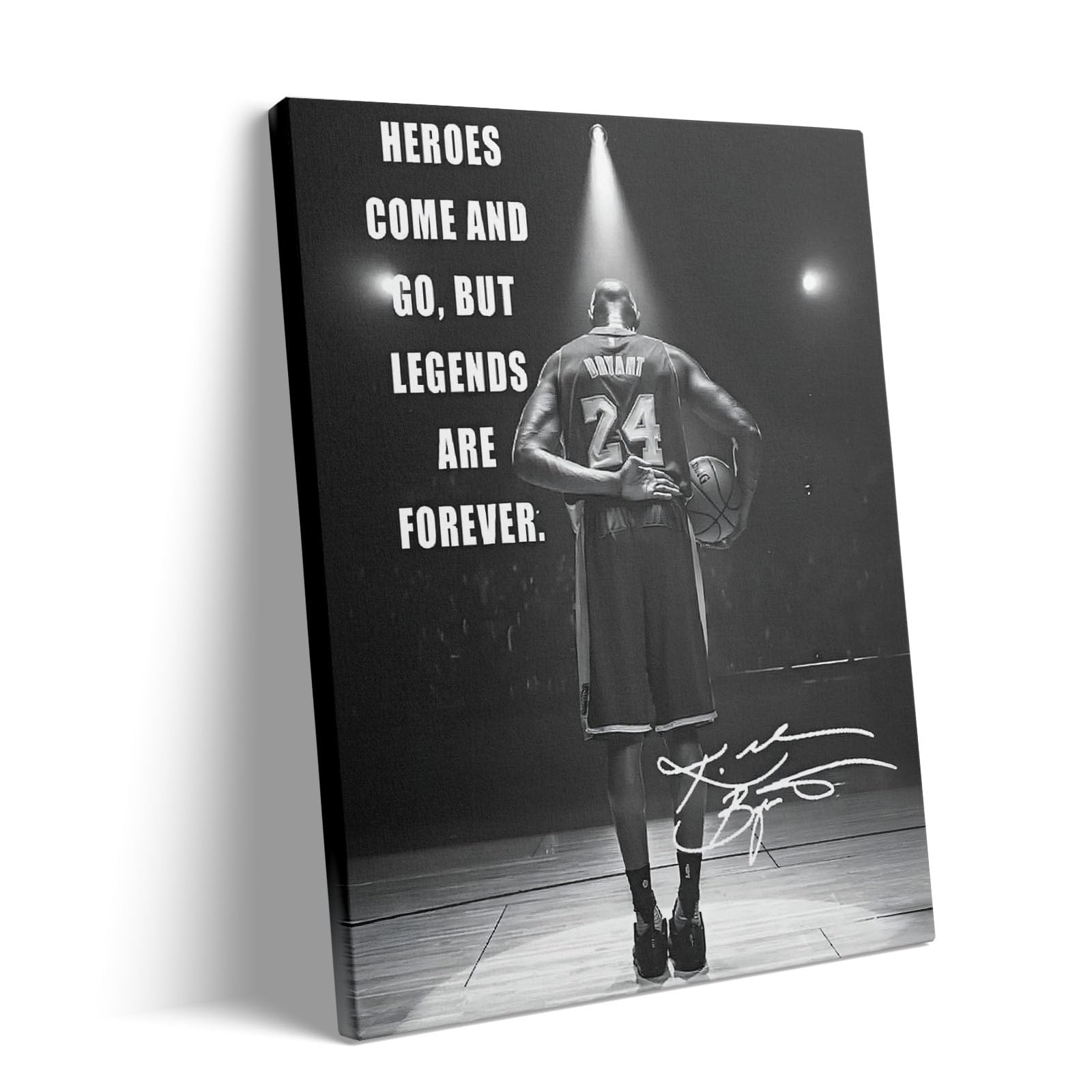 Inspirational Kobe Bryant Artwork: Featuring the powerful quote "Heroes Come and Go, but Legends Are Forever," this artwork immortalizes Kobe Bryant's legacy and determination.